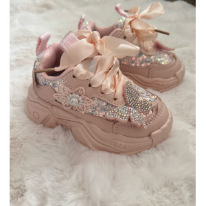 Опис Кросівки для дівчинки блискучі з метеликом колір рожевий 10759