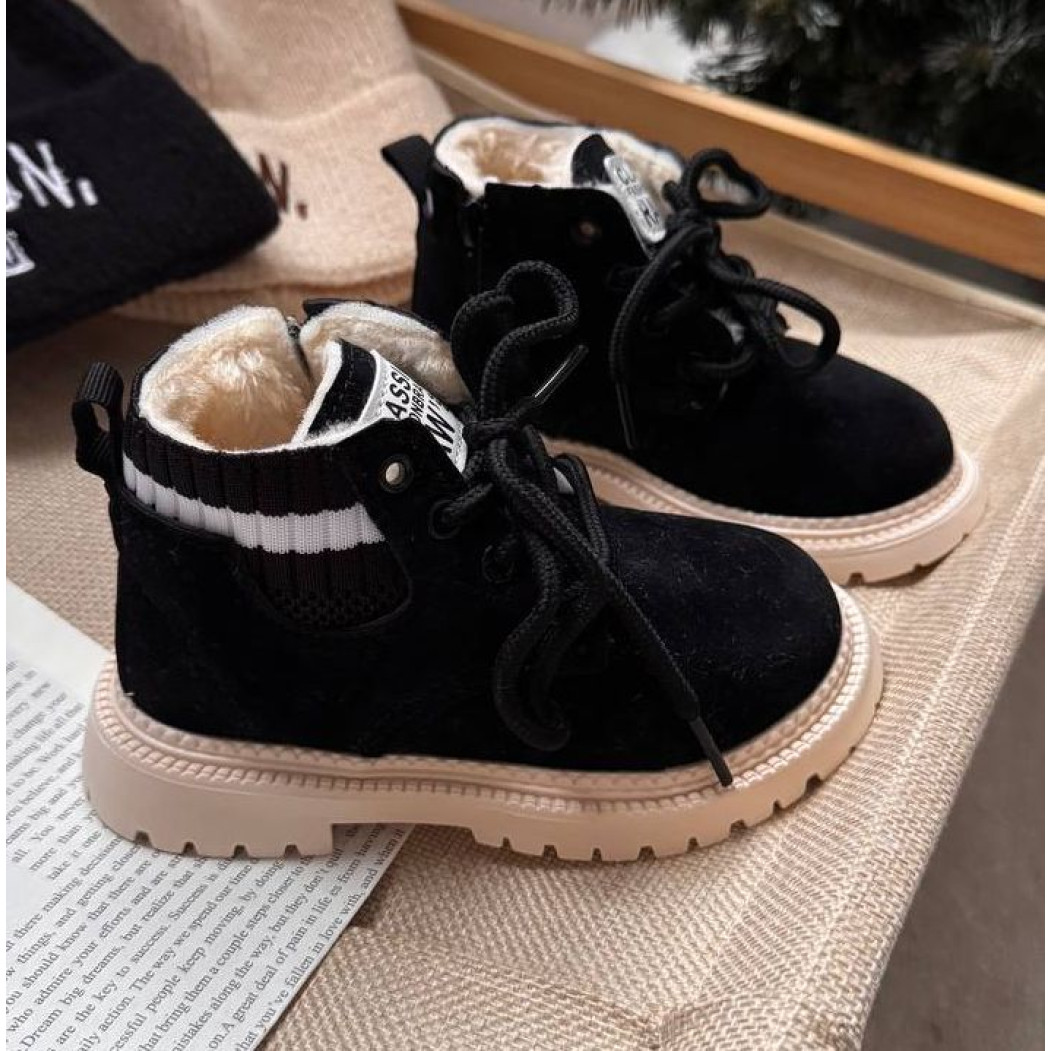 Верх виготовлений з міцного еко-нубуку, який не боїться вологи та легко чиститься, а всередині м'яке штучне хутро забезпечує ніжне тепло для маленьких ніжок.