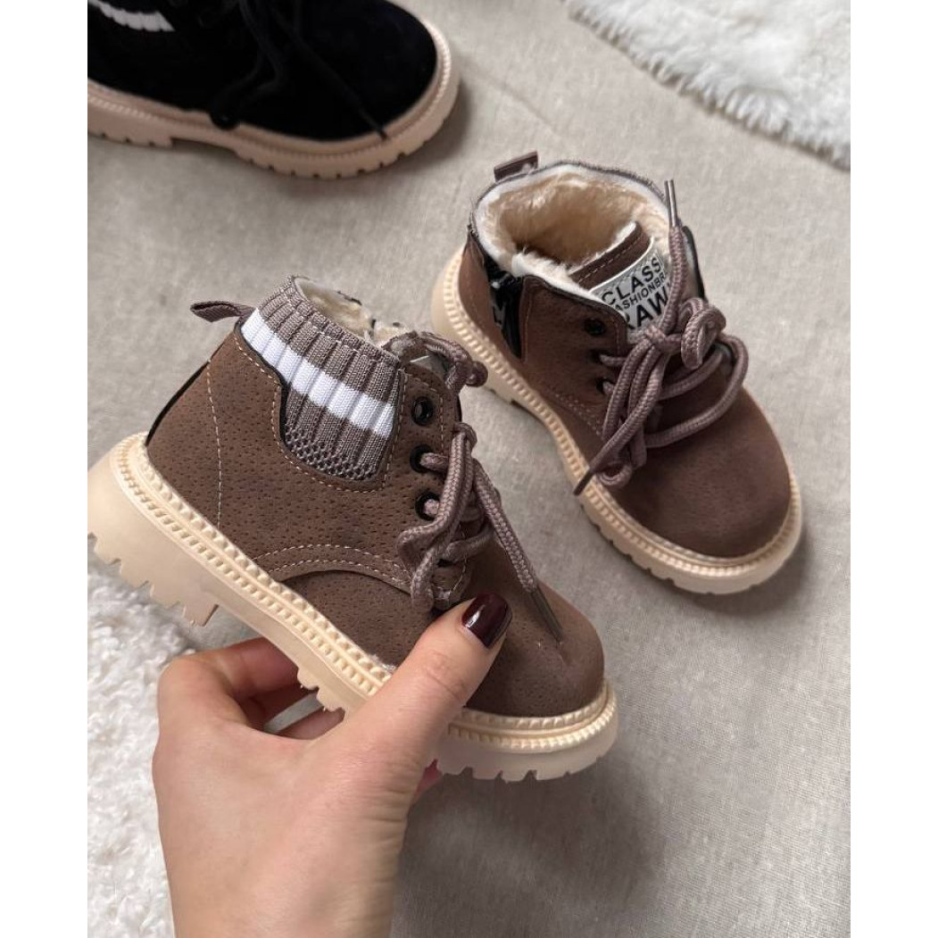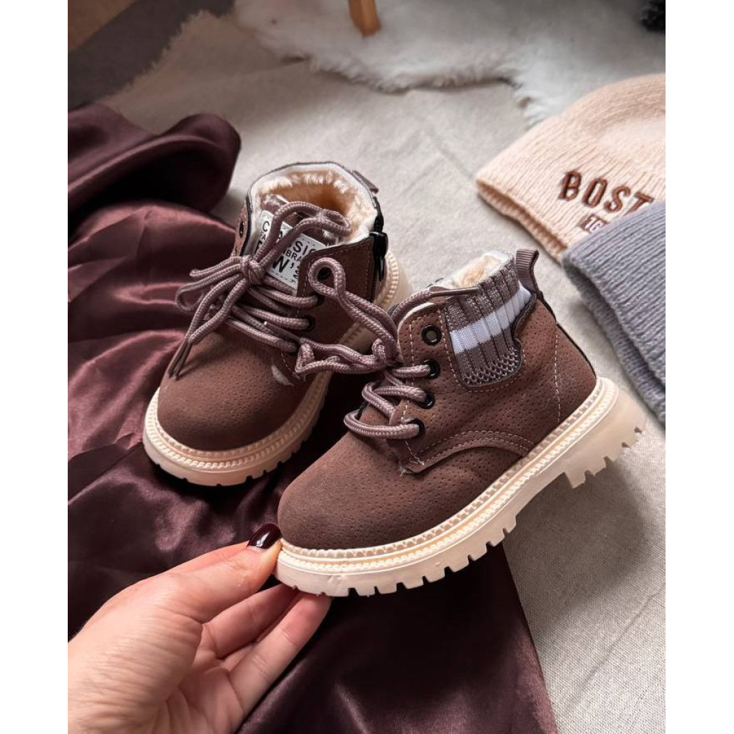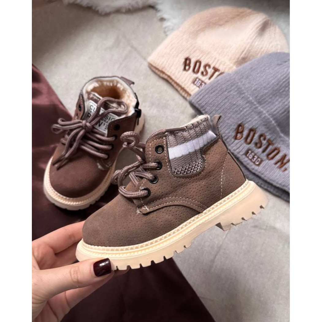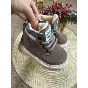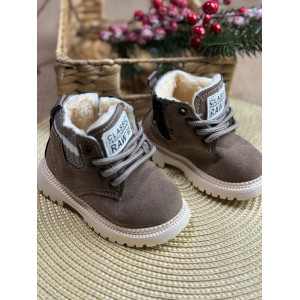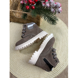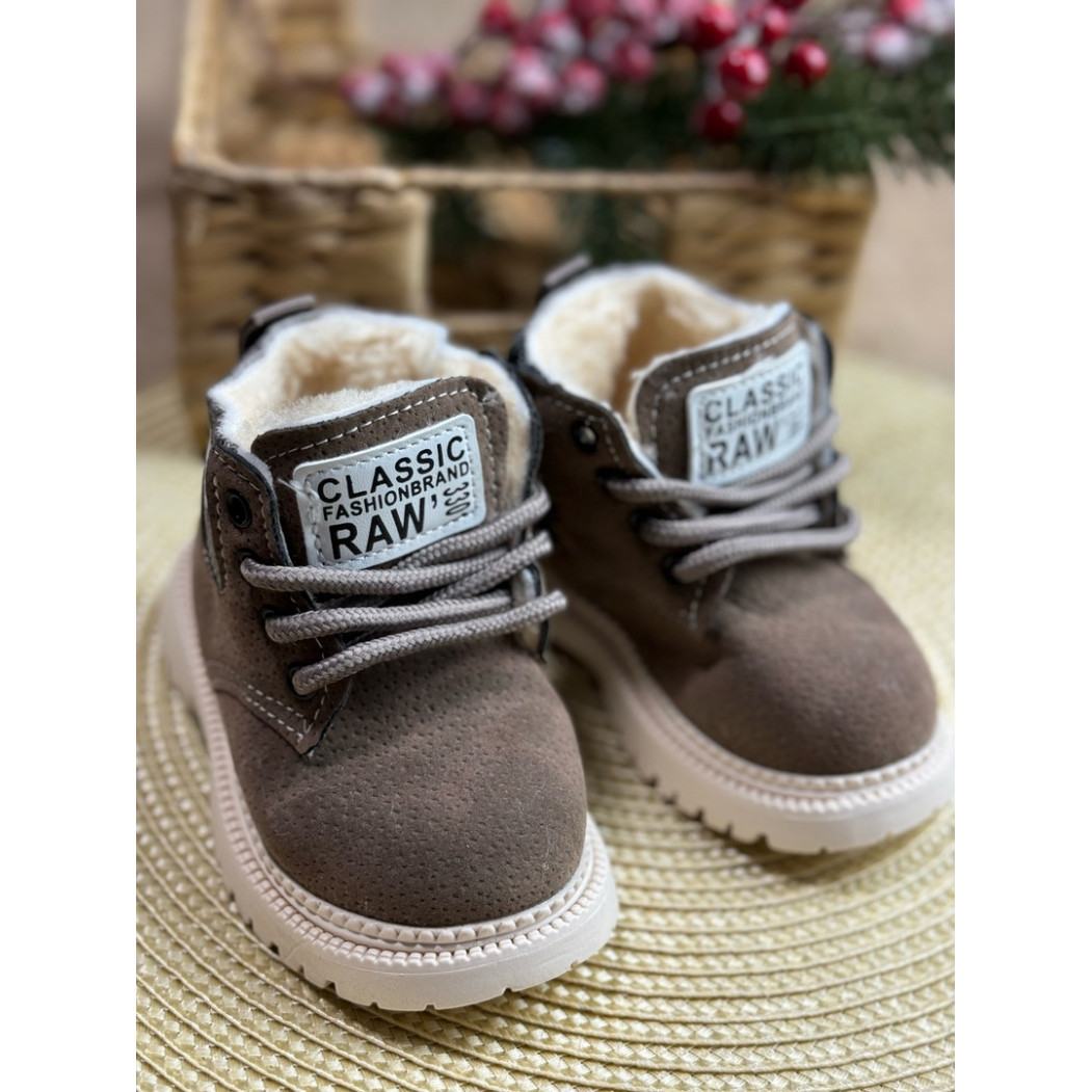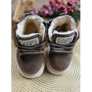 Дитячі черевики RAW модного сірого кольору з білою підошвою - стиль, який поєднується з турботою про тепло маленьких ніжок.