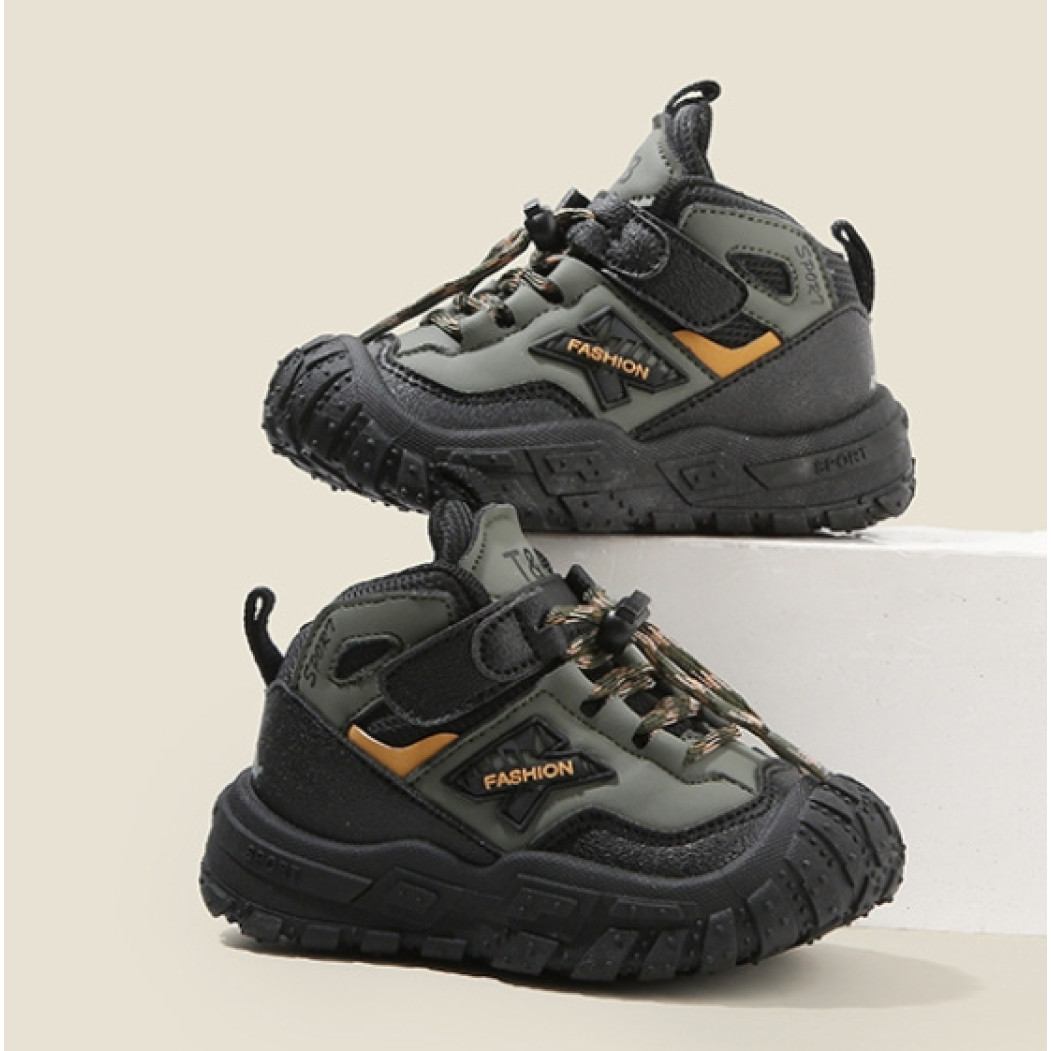 Кросівки мають універсальний повсякденний стиль, тому їх легко поєднувати зі спортивними костюмами, джинсами або повсякденним одягом. Практичний колір хакі добре підходить для активних дітей, оскільки бруд менш помітний.