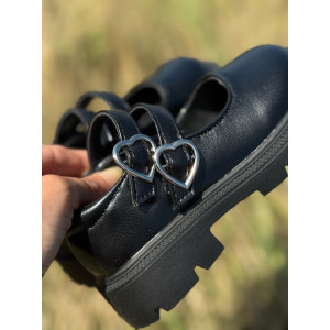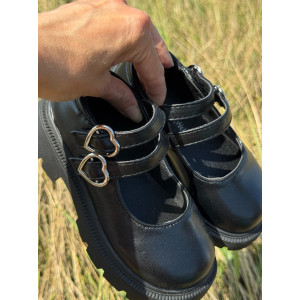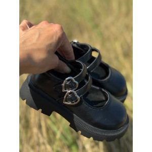Опис Стильні лофери для дівчинки з сердечками колір чорний 10904