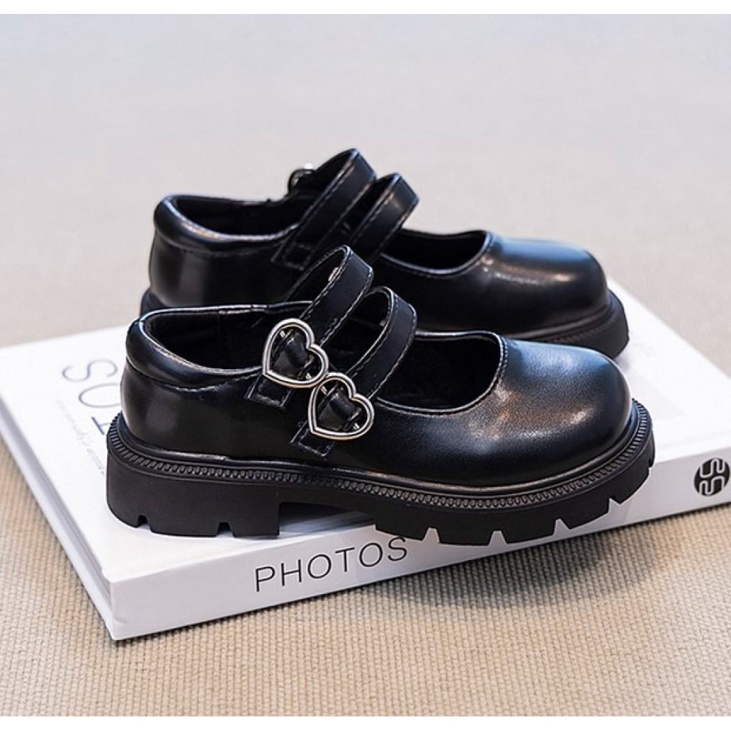 Опис Стильні лофери для дівчинки з сердечками колір чорний 10904