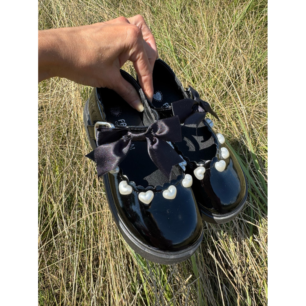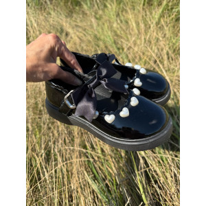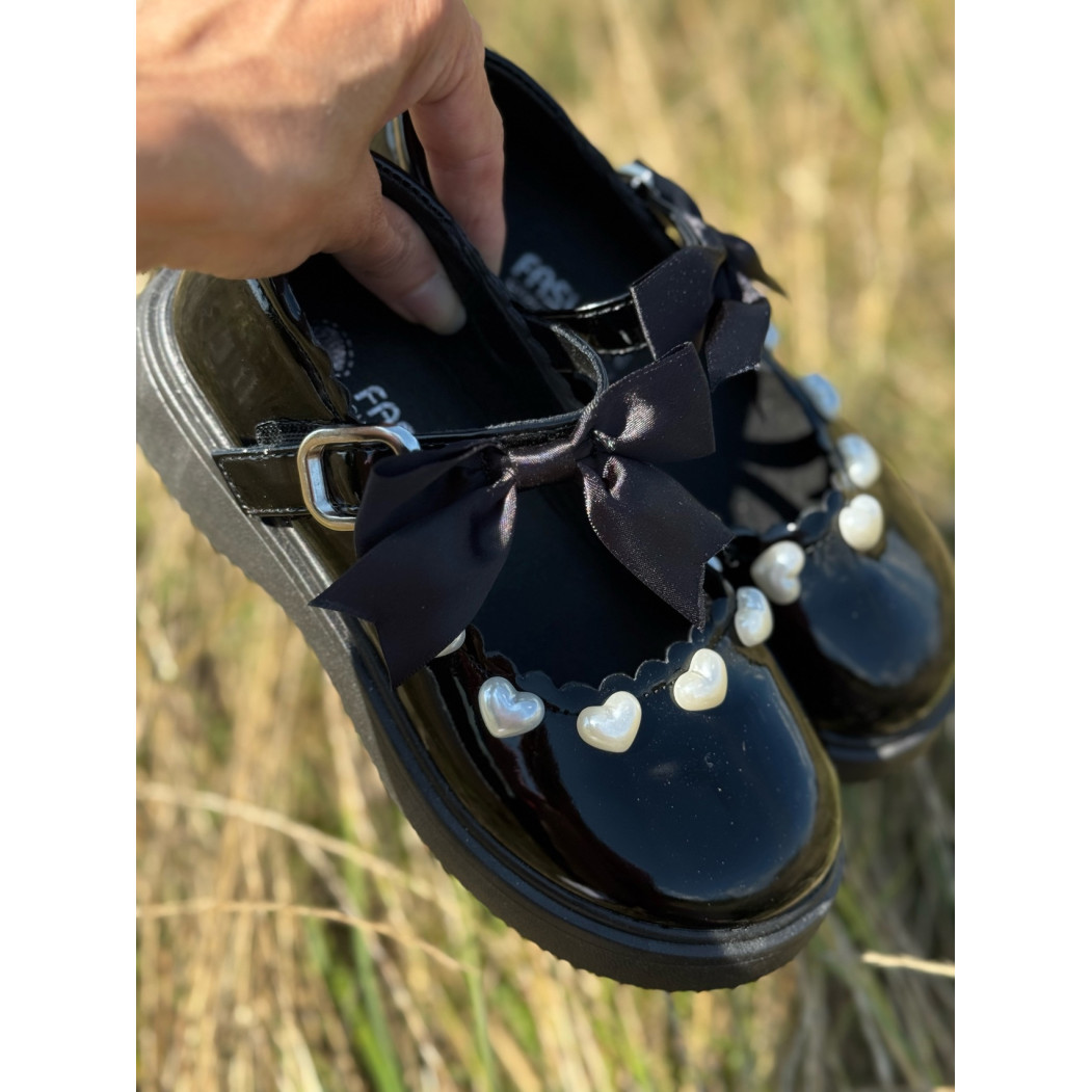 Опис Туфлі для дівчинки лаковані з сердечками колір чорний 10903
