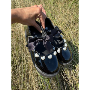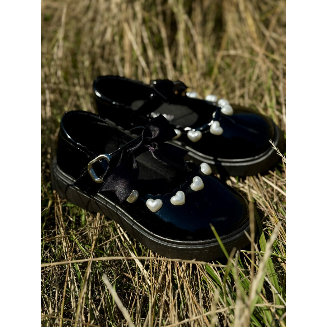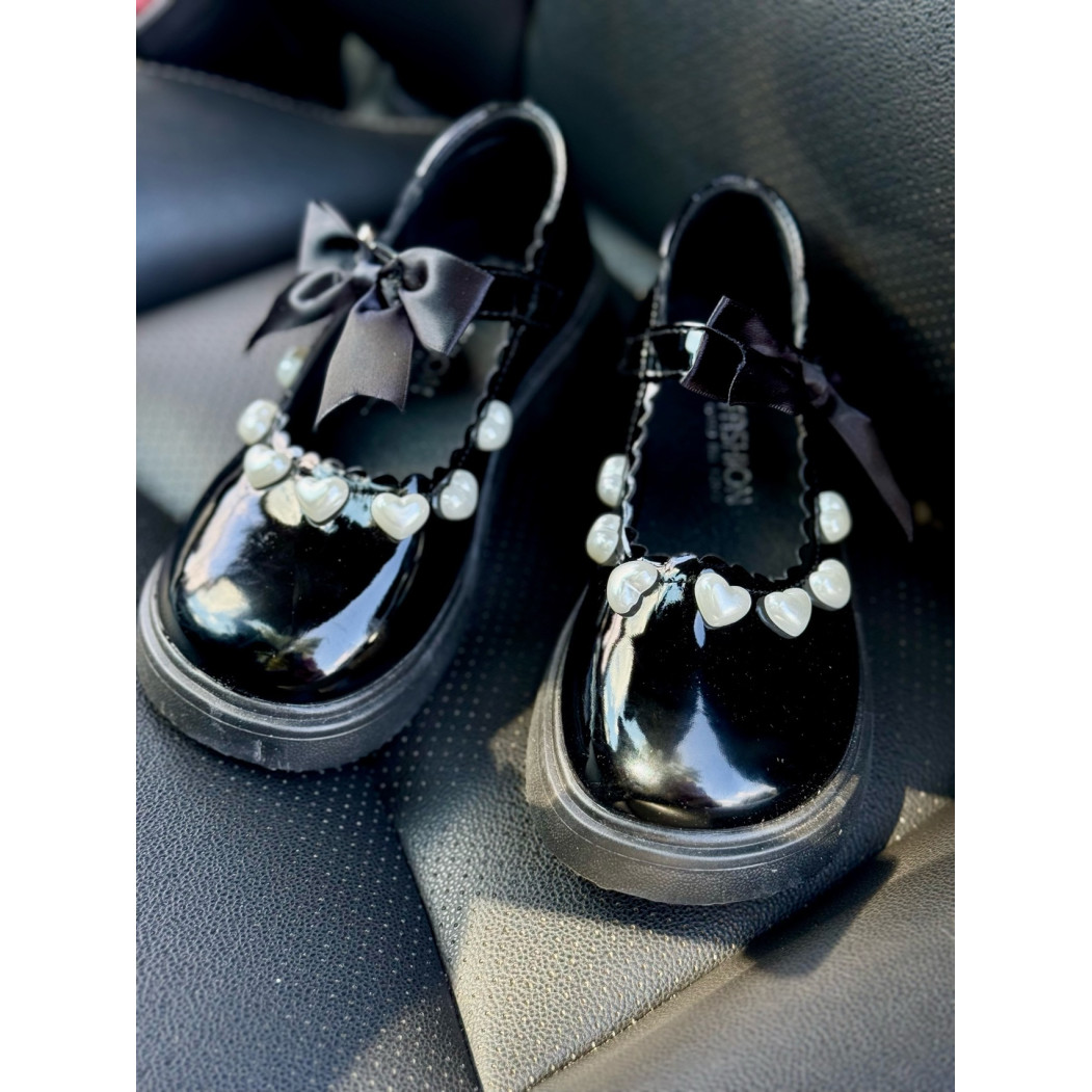 Ці чарівні лаковані туфельки з великим бантом і перловими сердечками створені для того, щоб підкреслити індивідуальність вашої дівчинки