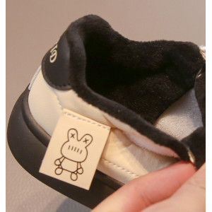 Ці теплі дитячі кросівки виготовлені з високоякісної екошкіри, яка легко чиститься та зберігає привабливий вигляд навіть після активного використання. Всередині - м'який плюш, який дарує ніжкам тепло та комфорт.