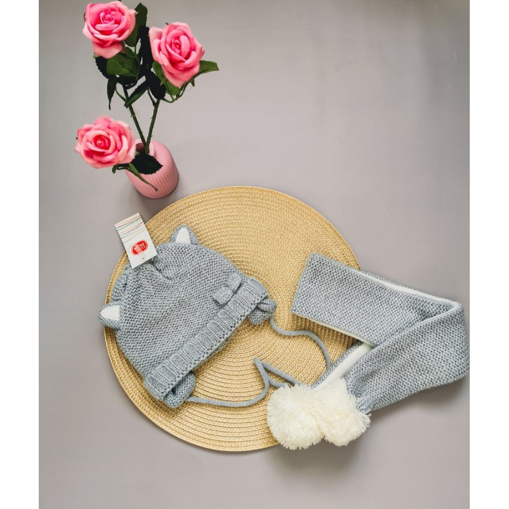 Миленький комплектик для дівчинки. М'який, теплий, зручний, стильний, чудово доповнить будь-який образ. Зав'язки запобігають зніманню шапочки дитинкою, а також фіксують шапку на голівці і можна не хвилюватись, що вона зсунеться і вушка будуть відкриті
