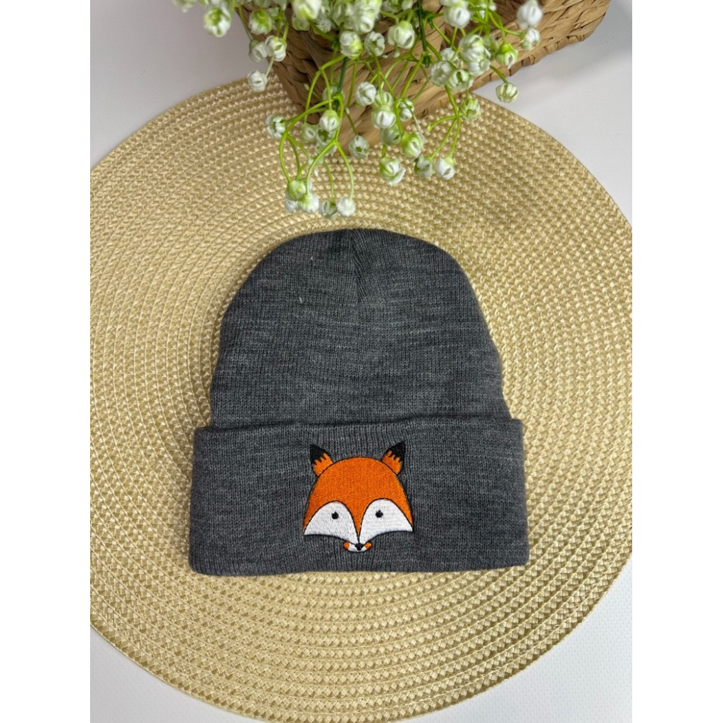 Опис Шапка демісезонна з лисичкою колір темно-сірий 10719