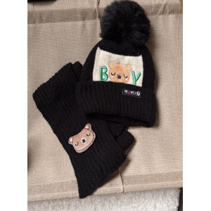 Опис Шапка і шарф комплект зимовий Boy колір чорний 10970