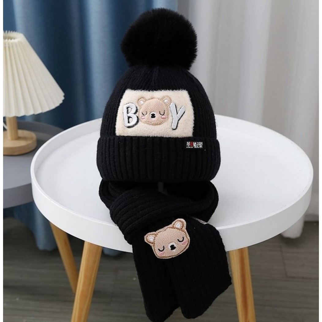 Шапка і шарф комплект зимовий Boy колір чорний 10970
