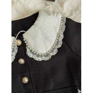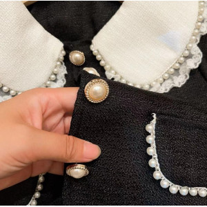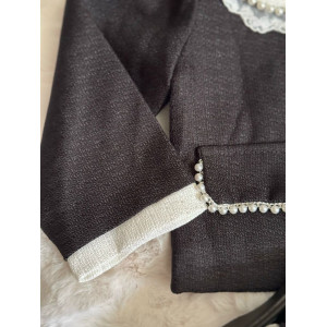 Розкішний комплект у стилі mini Chanel: піджак і спідничка. Виготовлений з якісного матеріалу, прикрашений декоративними перлинками та контрастним білим комірцем. Ідеальний варіант для свят, фотосесій, урочистих подій чи модних виходів у світ.