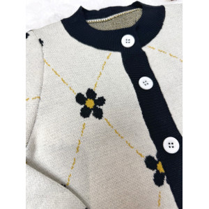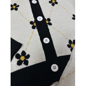 Кофти на гудзиках – зручний фасон із ніжним візерунком у квіточку, що додає образу особливого шарму. Ґудзики легко застібаються, забезпечуючи комфорт при носінні.