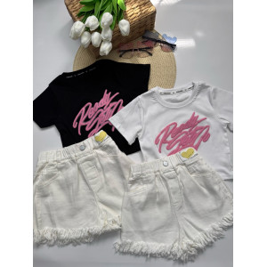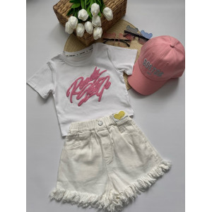 Опис Костюм для дівчинки на літо стильний біла футболка і білі шорти 10794