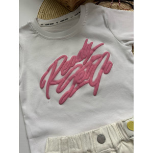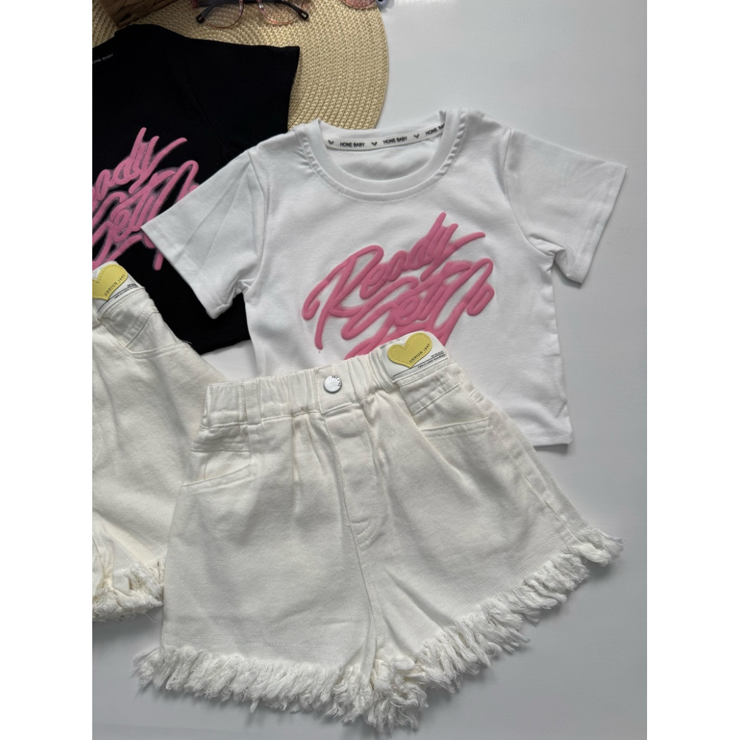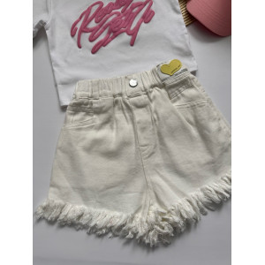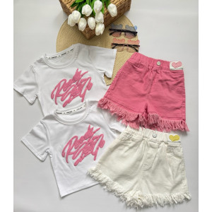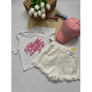 Стильний літній костюм для дівчинки "Urban Pink" — футболка + білі шорти з бахромою