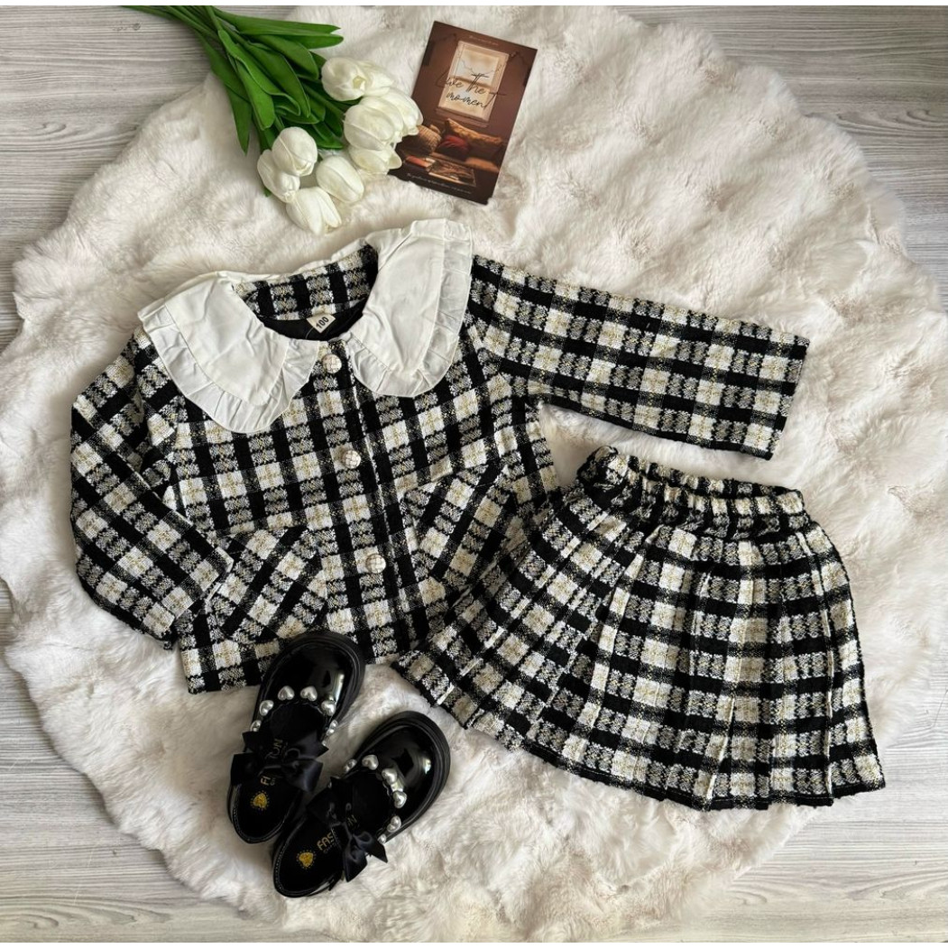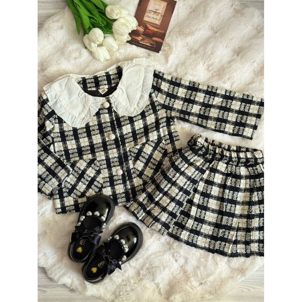 Модний комплект у класичному стилі: піджак + спідничка з якісного твіду. Ідеально підходить для святкових подій, школи або стильних повсякденних образів.