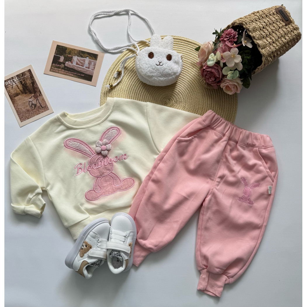 Опис Костюм для дівчинки з зайчиком колір рожевий 10885