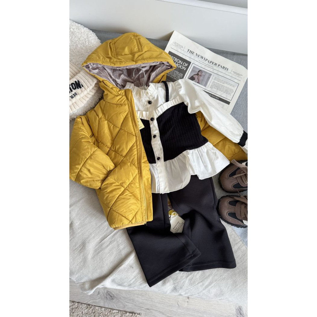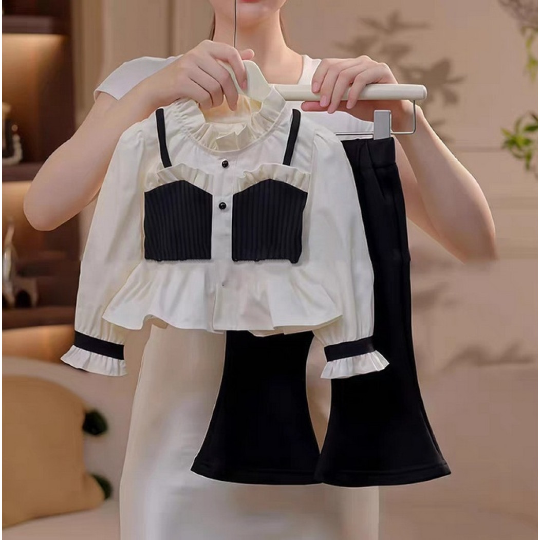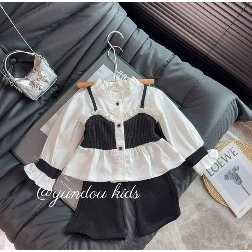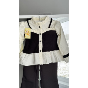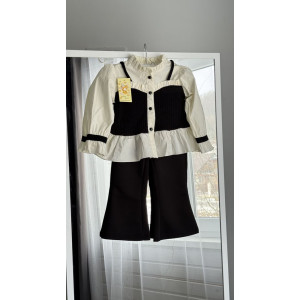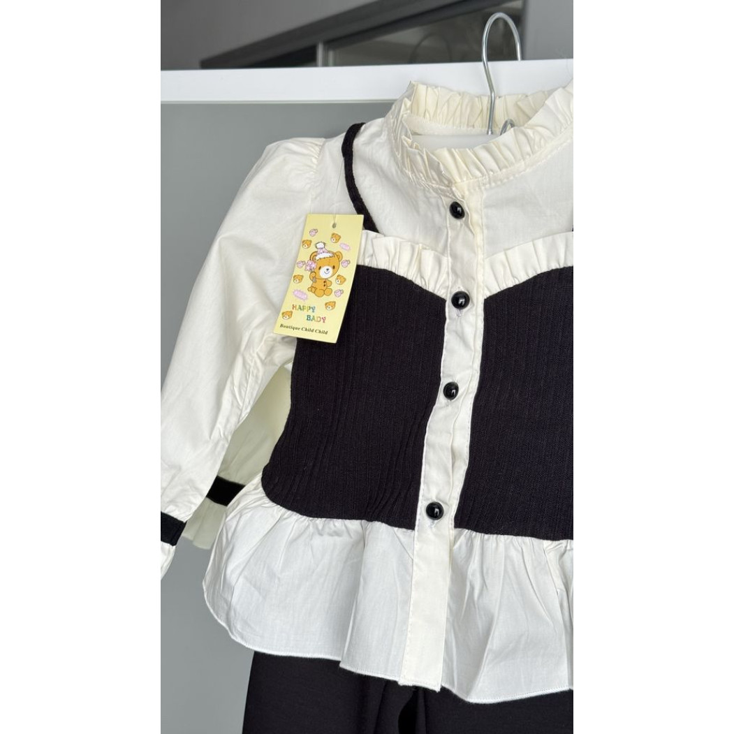 Неймовірно гарний комплект для дівчинки: штанці + кофта-блузка в трендовому поєднанні чорного та молочного кольорів