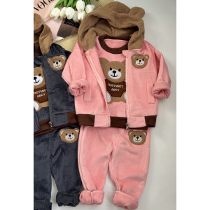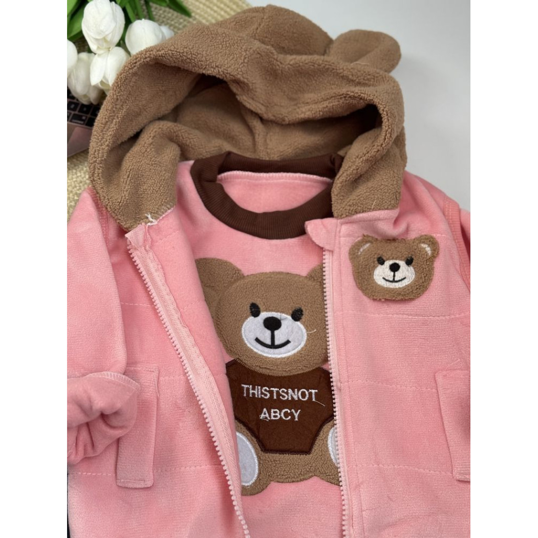 Опис Костюм трійка Bear світло-рожевий 1574