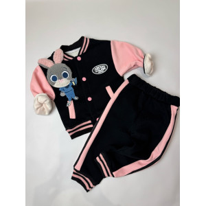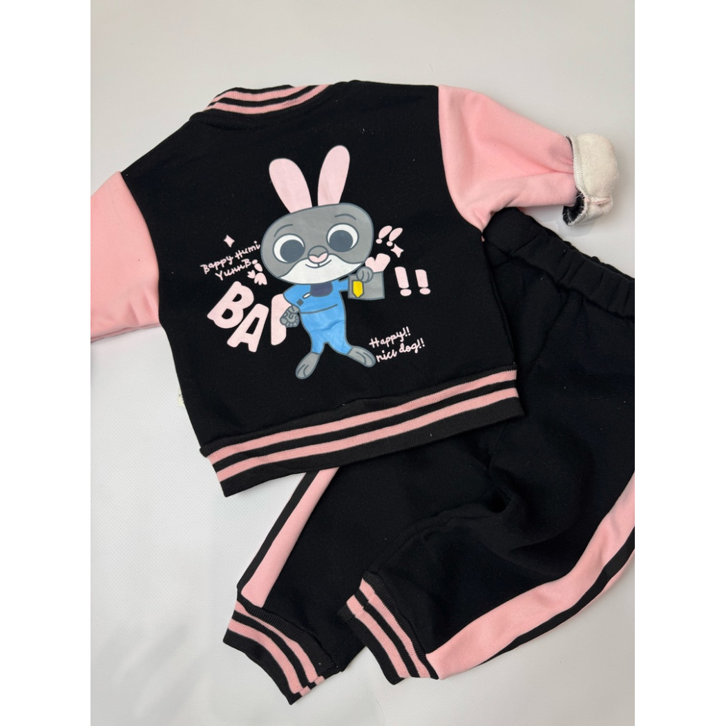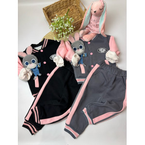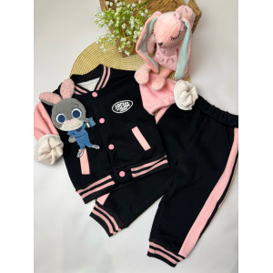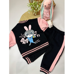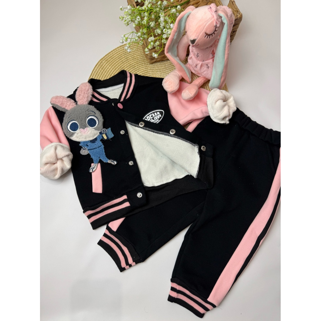 Опис Утеплений костюм з зайчиком для дівчинки чорний 10659