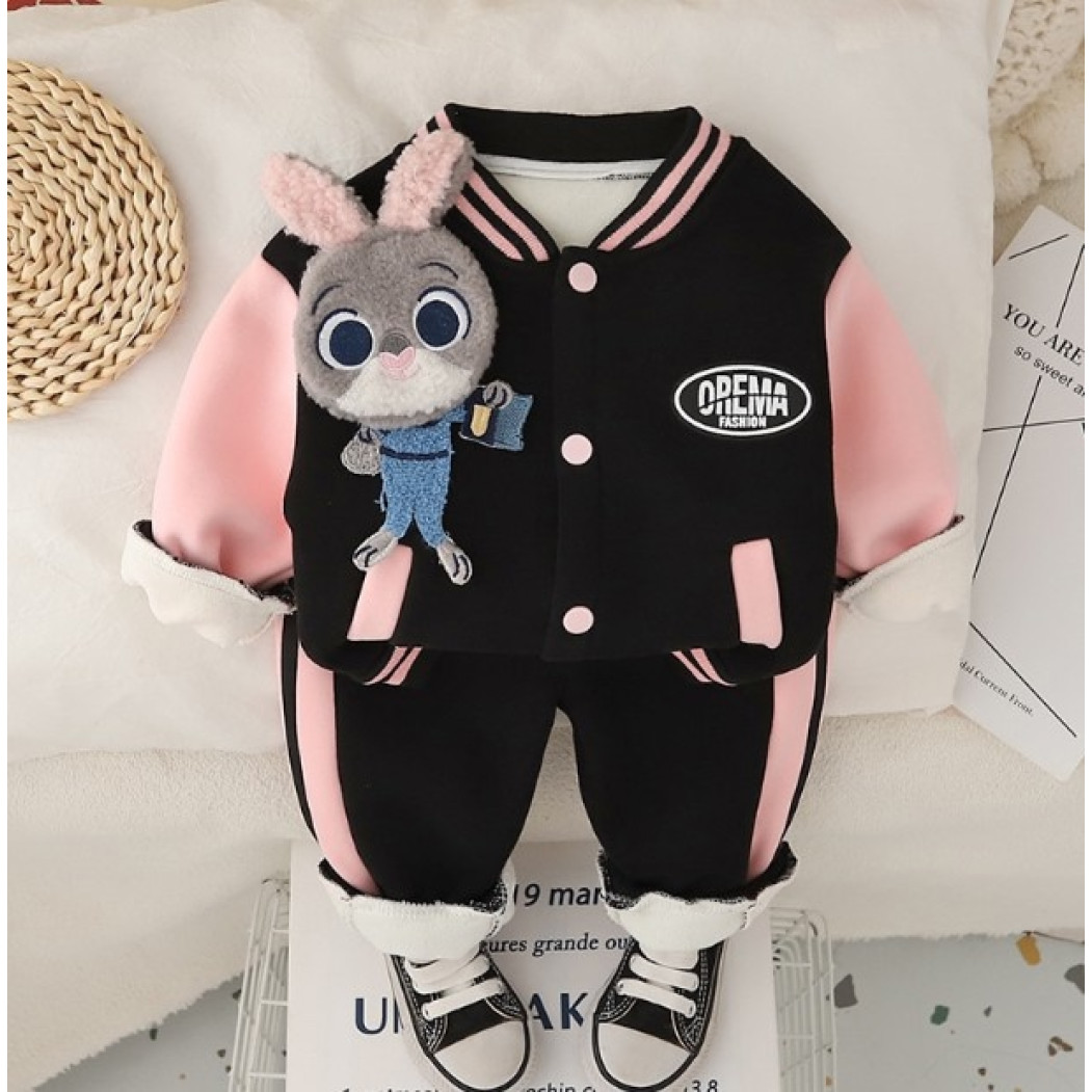 Відгуки про Утеплений костюм з зайчиком для дівчинки чорний 10659