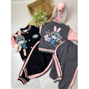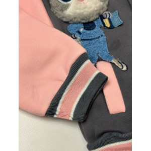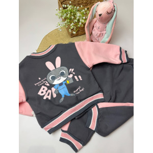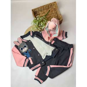 Опис Утеплений костюм з зайчиком для дівчинки сірий 10660