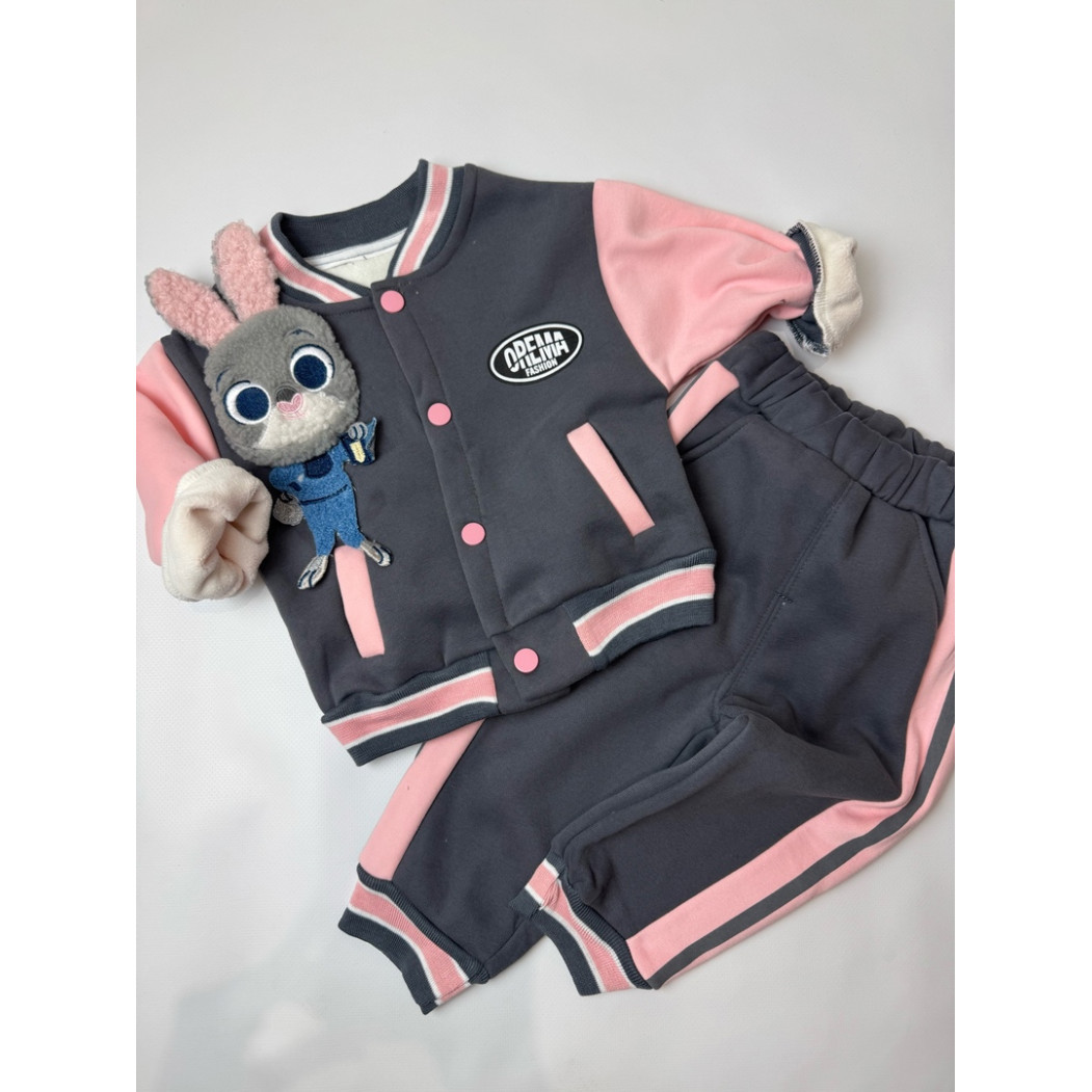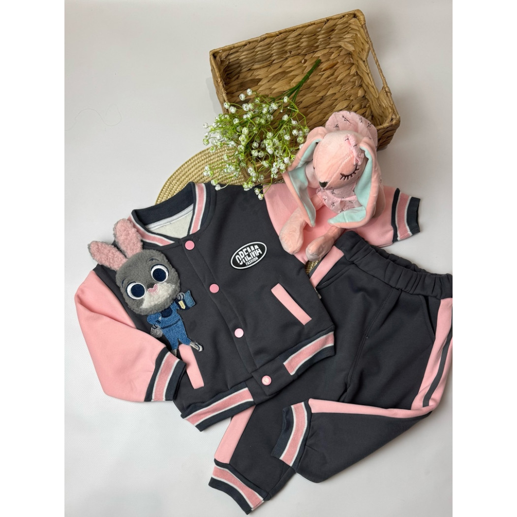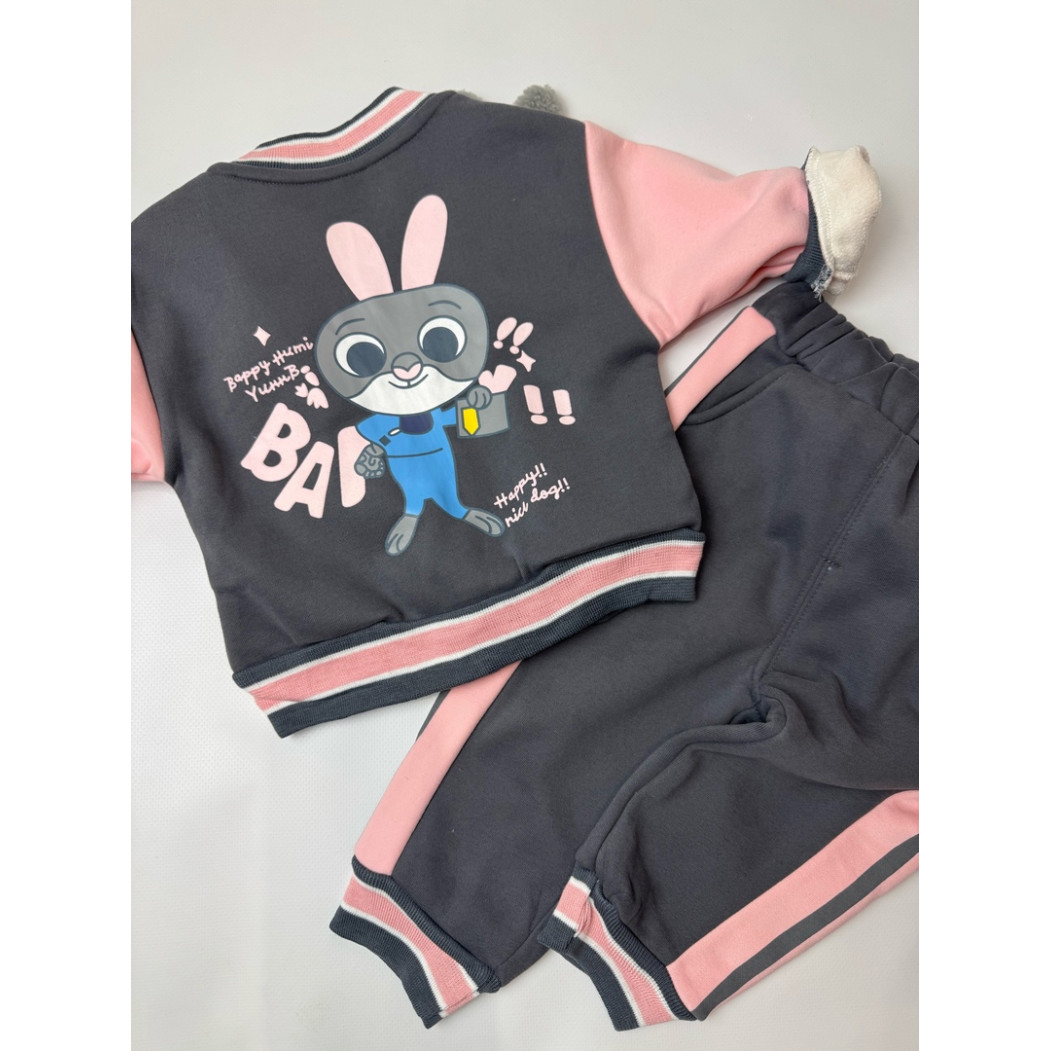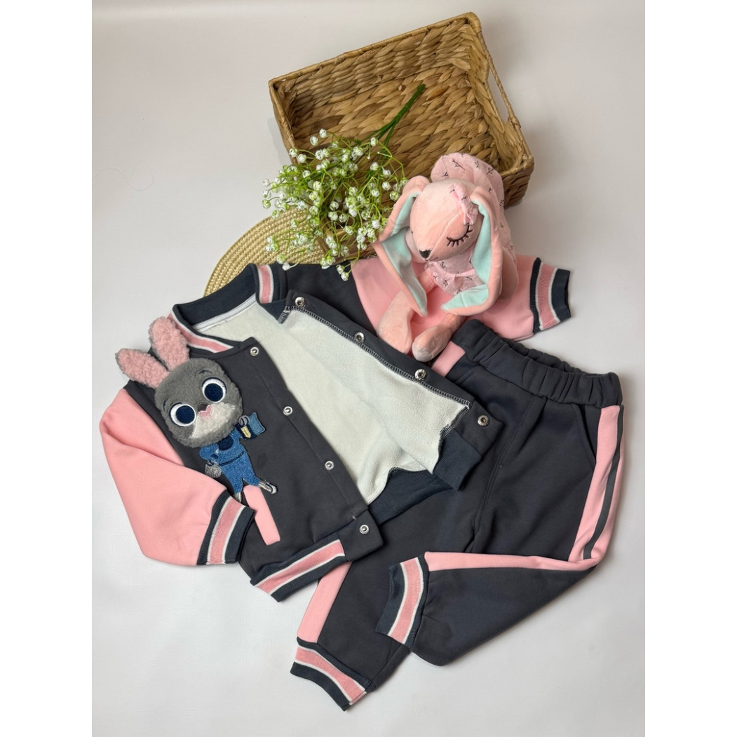Опис Утеплений костюм з зайчиком для дівчинки сірий 10660