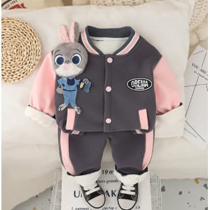 Основні характеристики Утеплений костюм з зайчиком для дівчинки сірий 10660