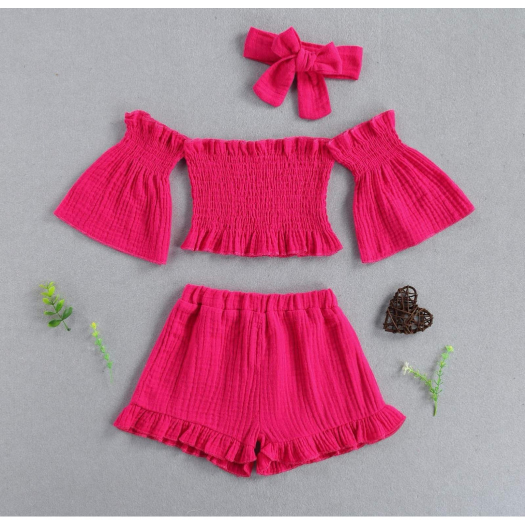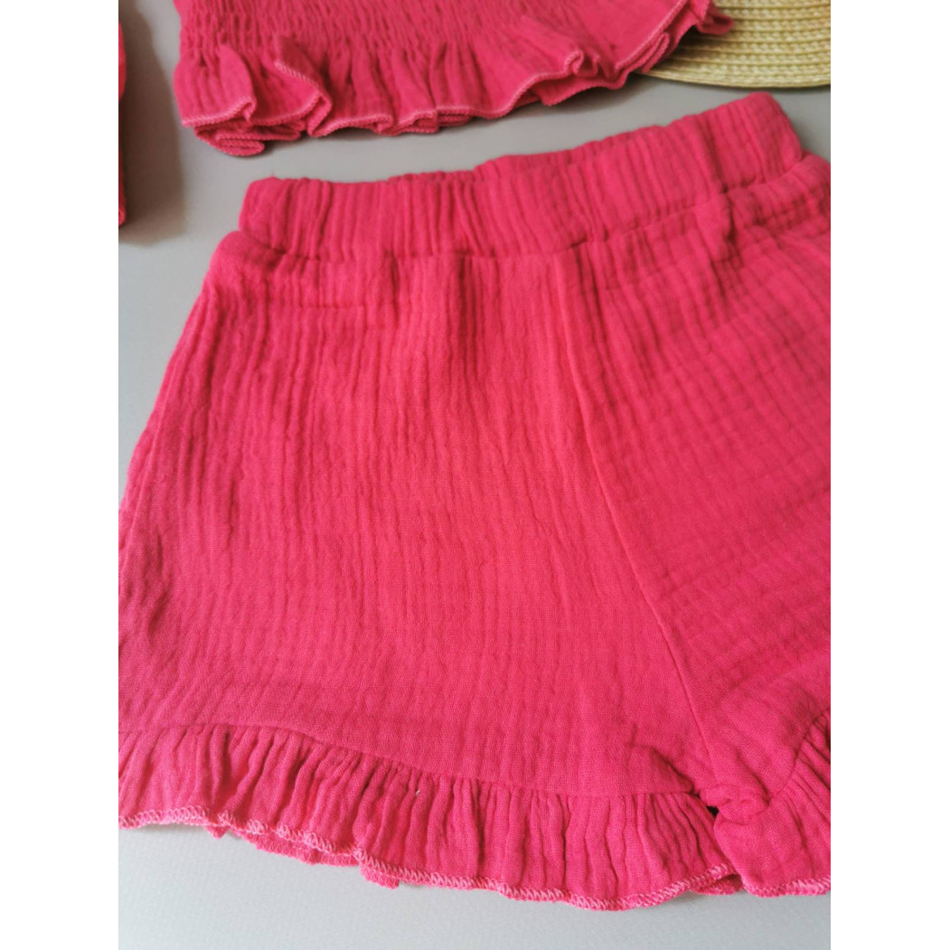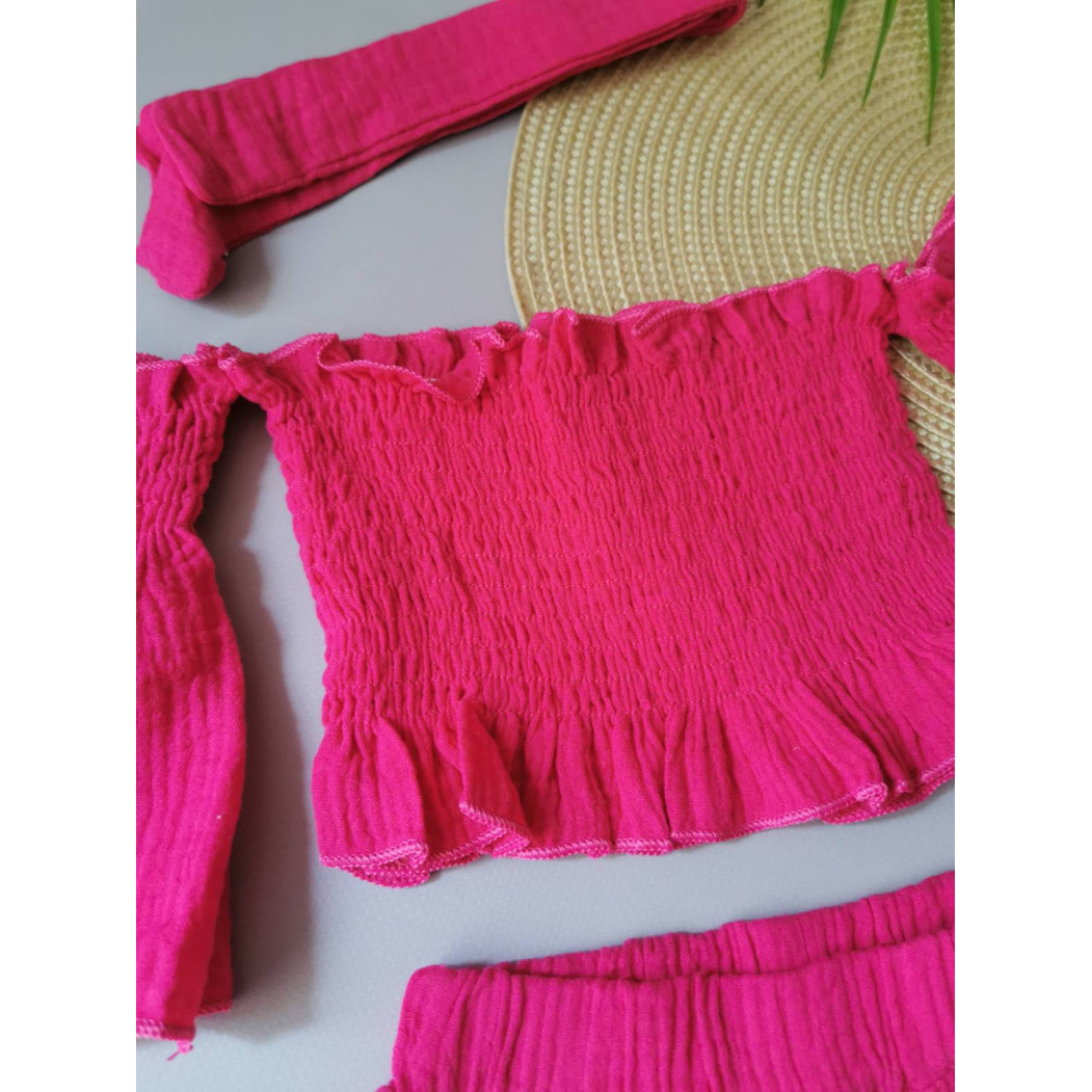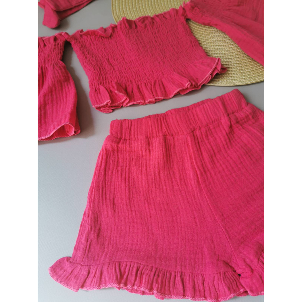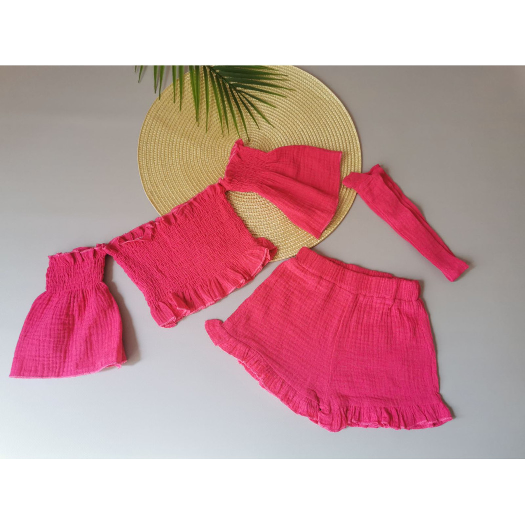 Опис Комплект для дівчинки на літо муслін малиновий 2142