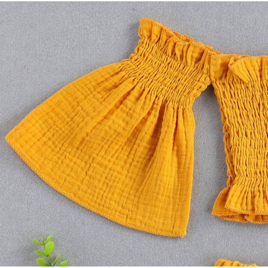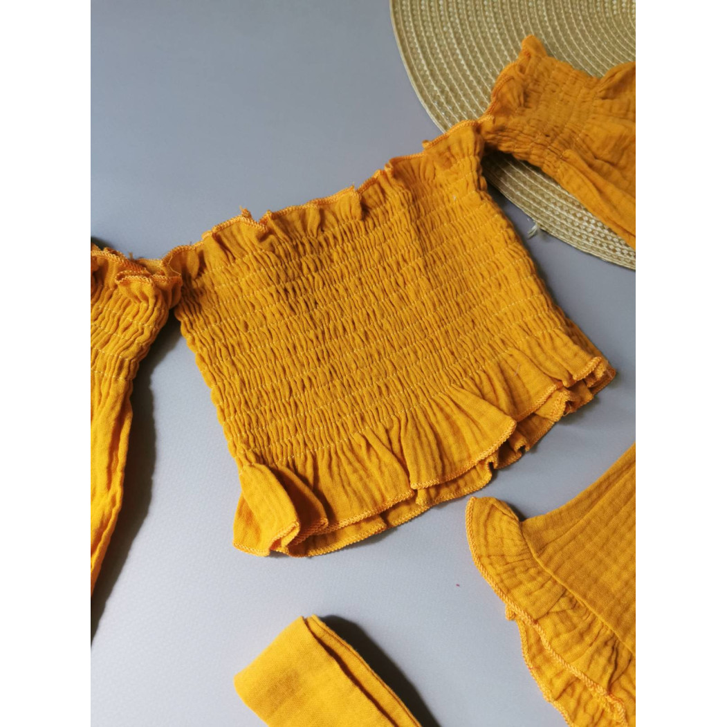 Опис Комплект для дівчинки на літо муслін жовтий 2143