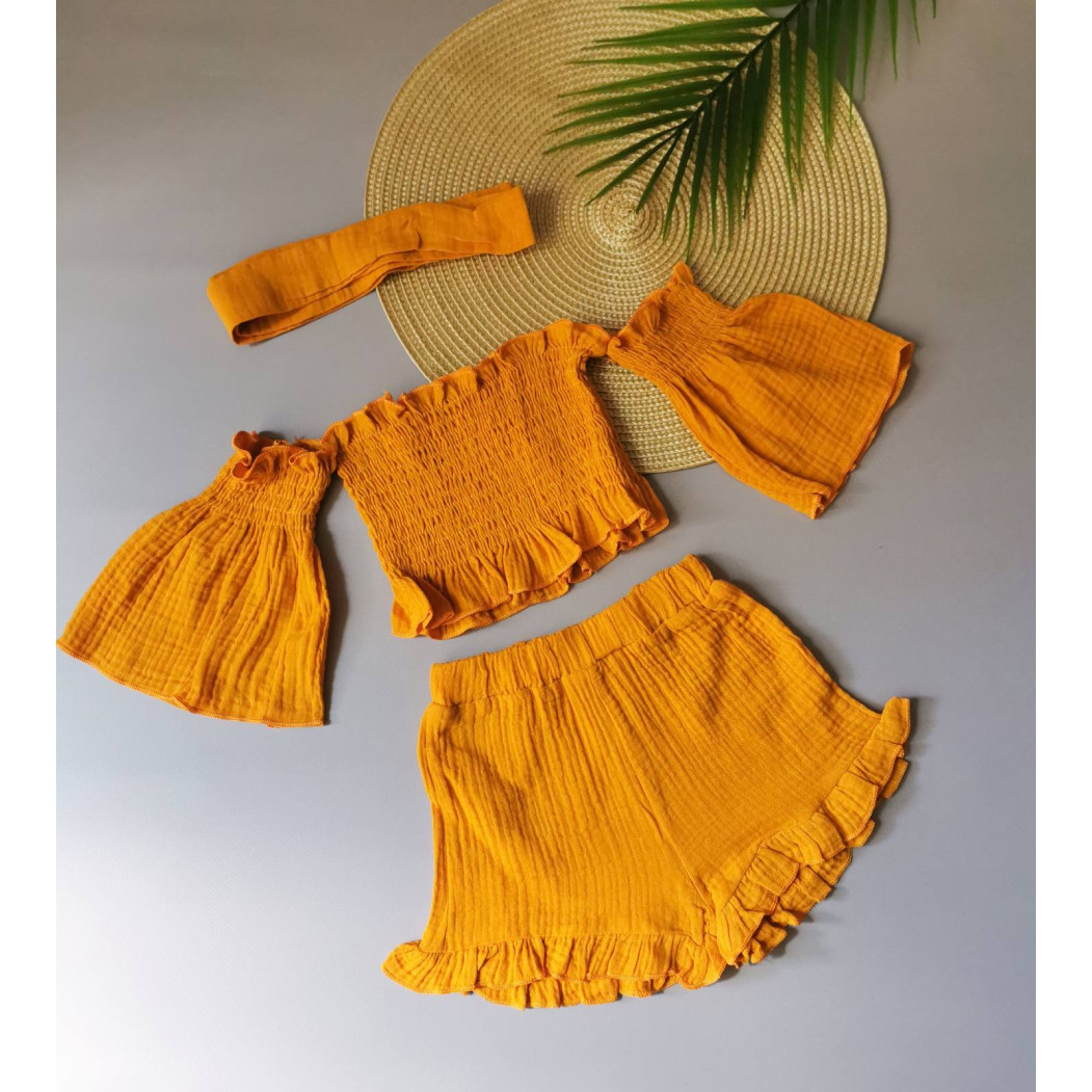 Комплект для дівчинки на літо муслін жовтий 2143