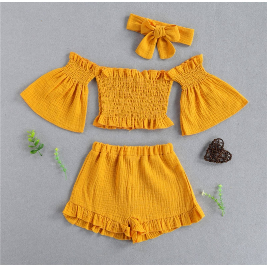 Основні характеристики Комплект для дівчинки на літо муслін жовтий 2143