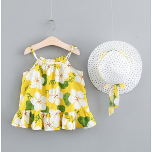 Комплект на літо для дівчинки з капелюшком жовтий бантик 10029