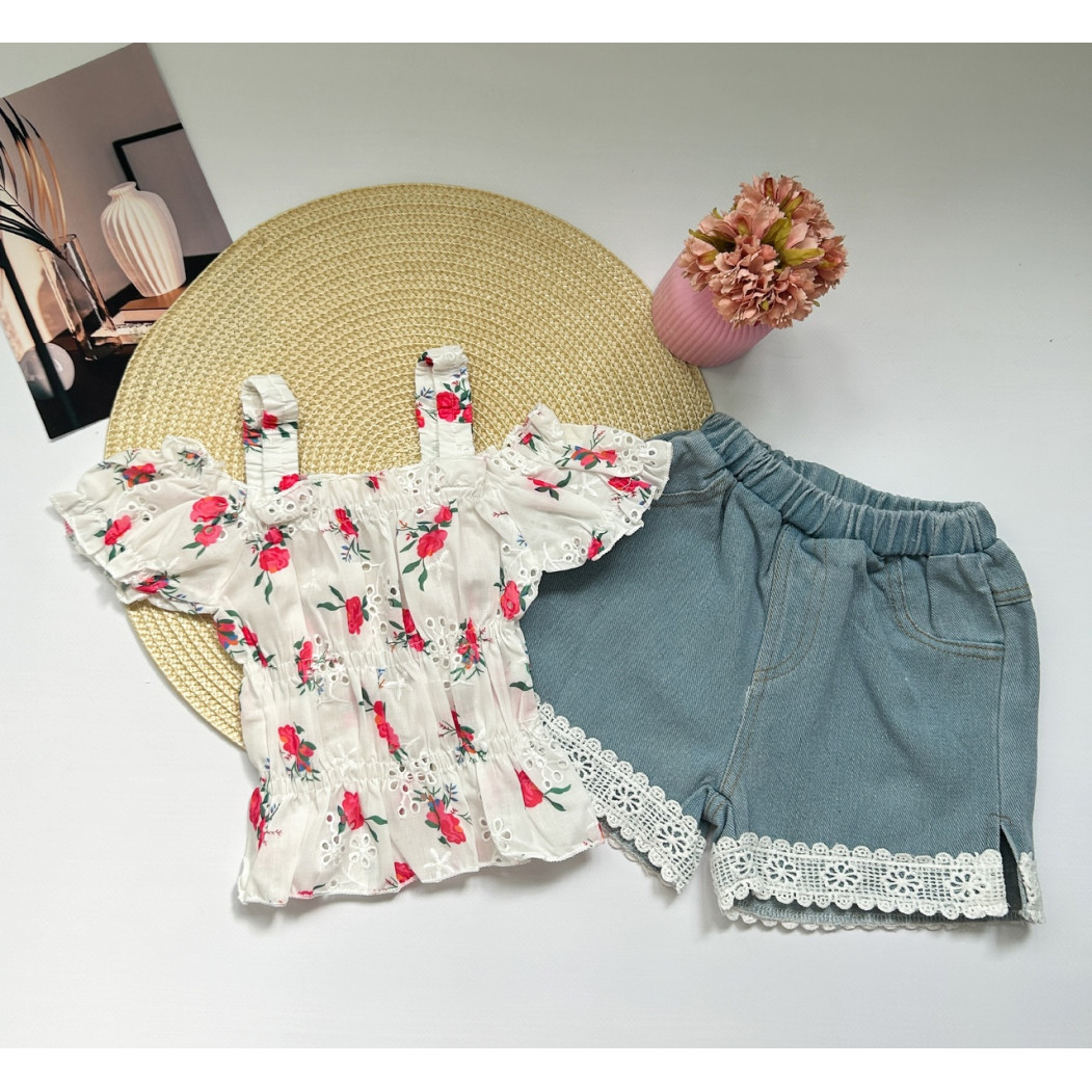 Опис Костюм для дівчинки з джинсовими шортами 10513