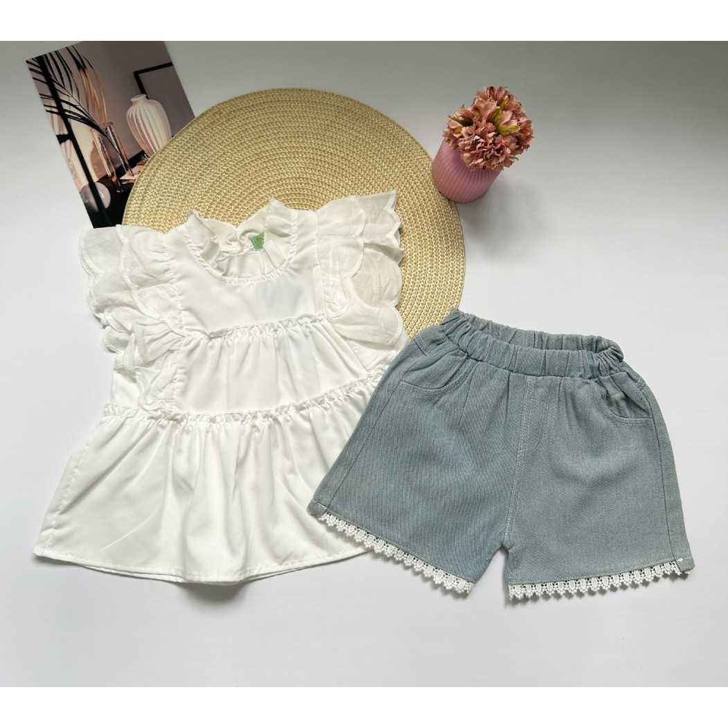 Опис Костюм для дівчинки з джинсовими шортами 10516