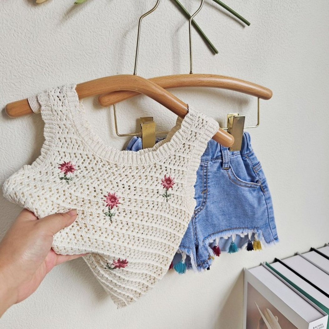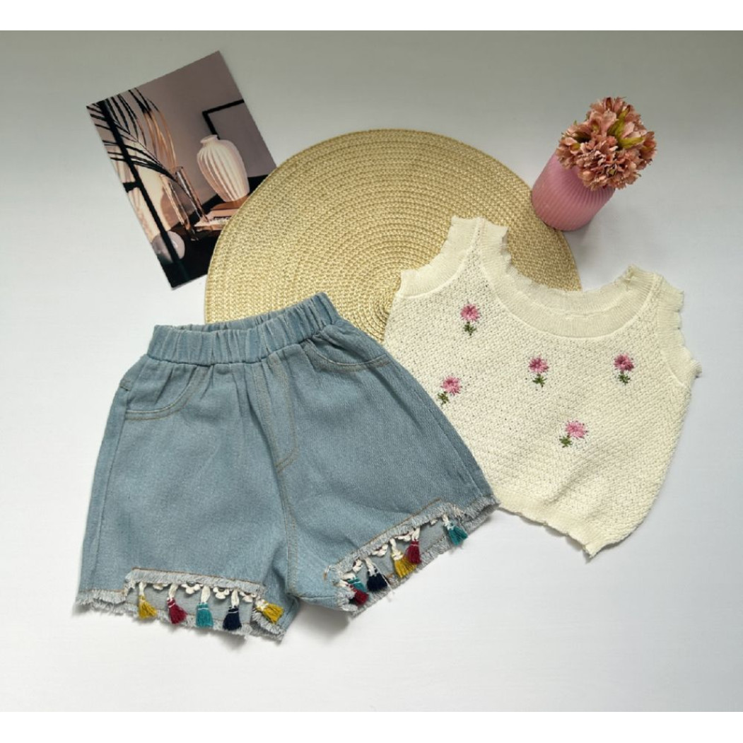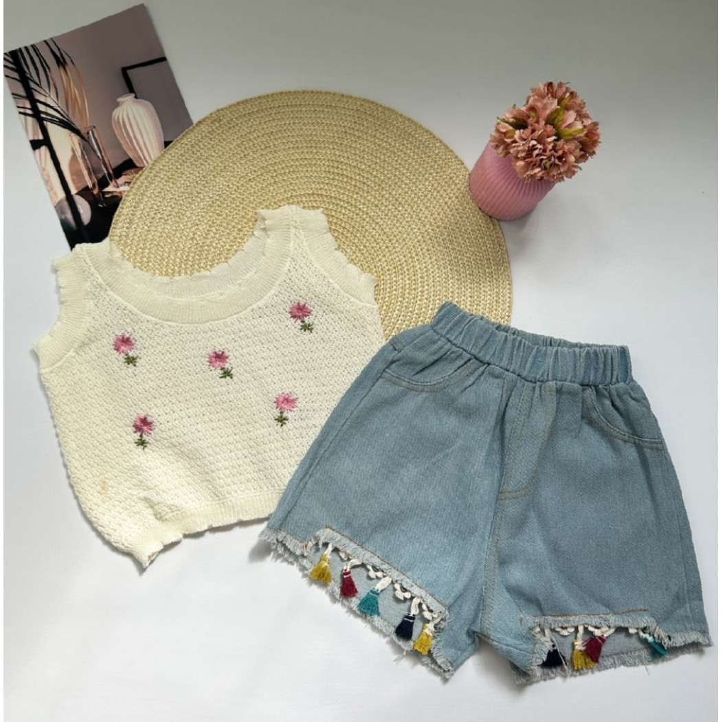 Відгуки про Костюм для дівчинки з джинсовими шортами і в'язаною майкою 10512