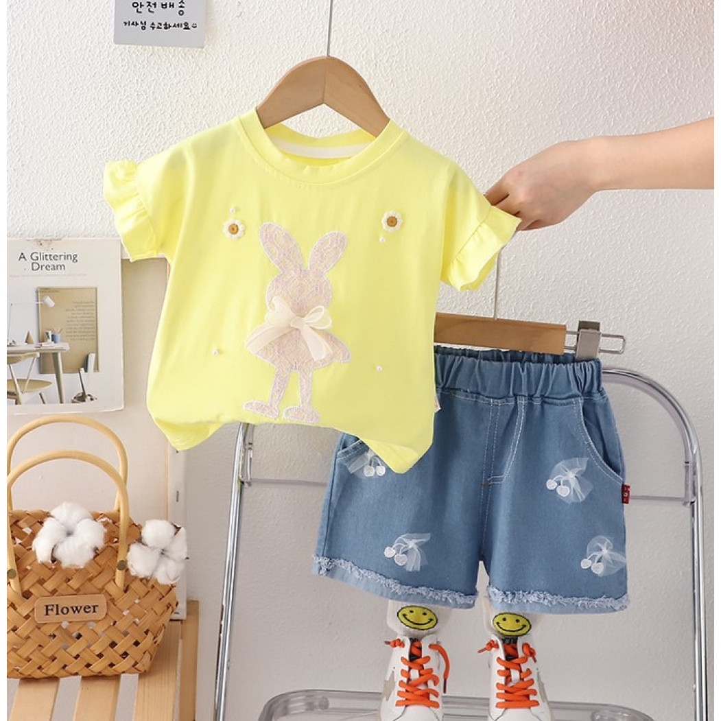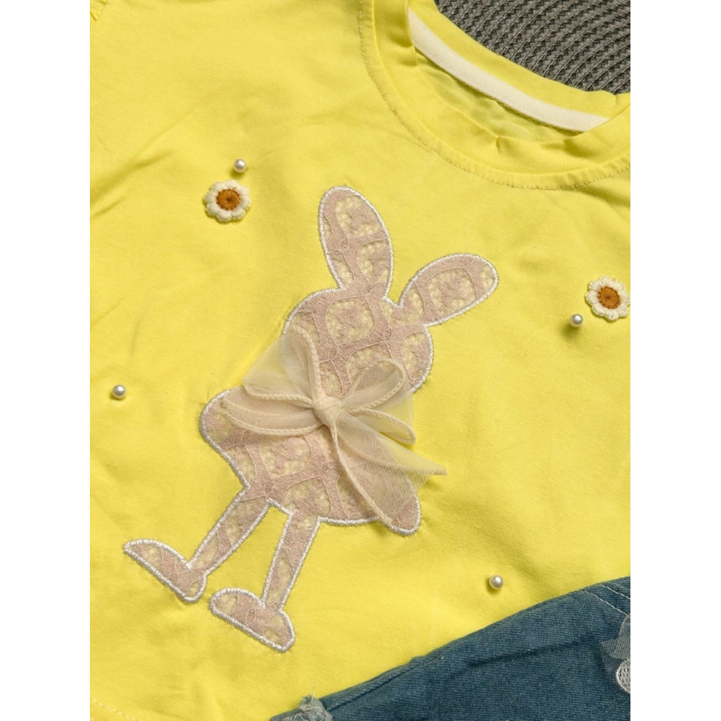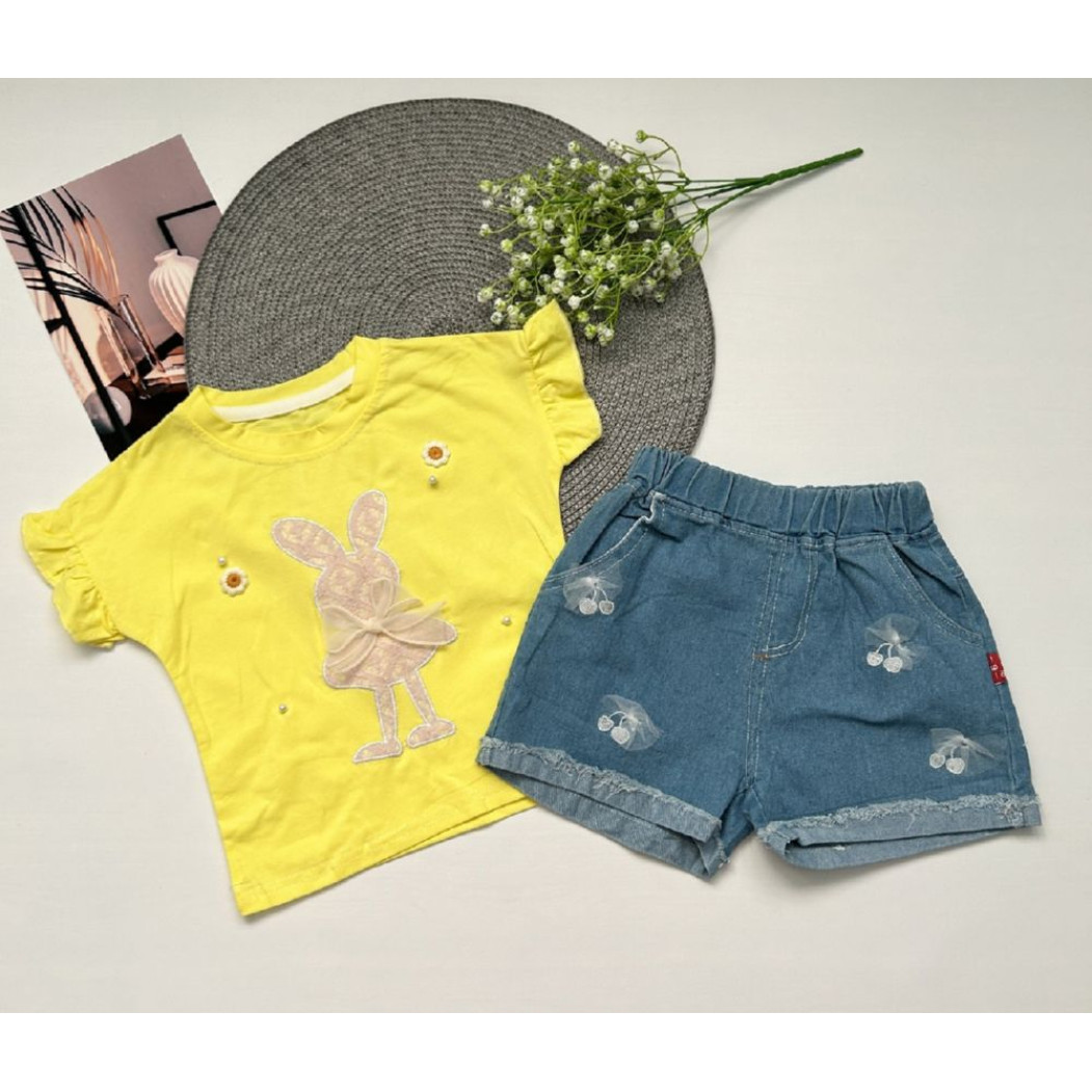 Опис Костюм для дівчинки з джинсовими шортами Зайчик 10525