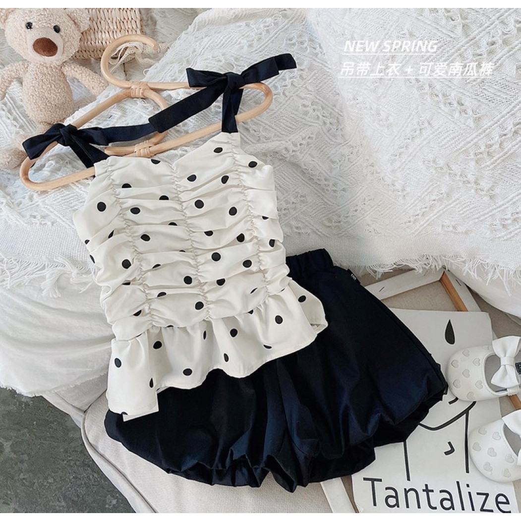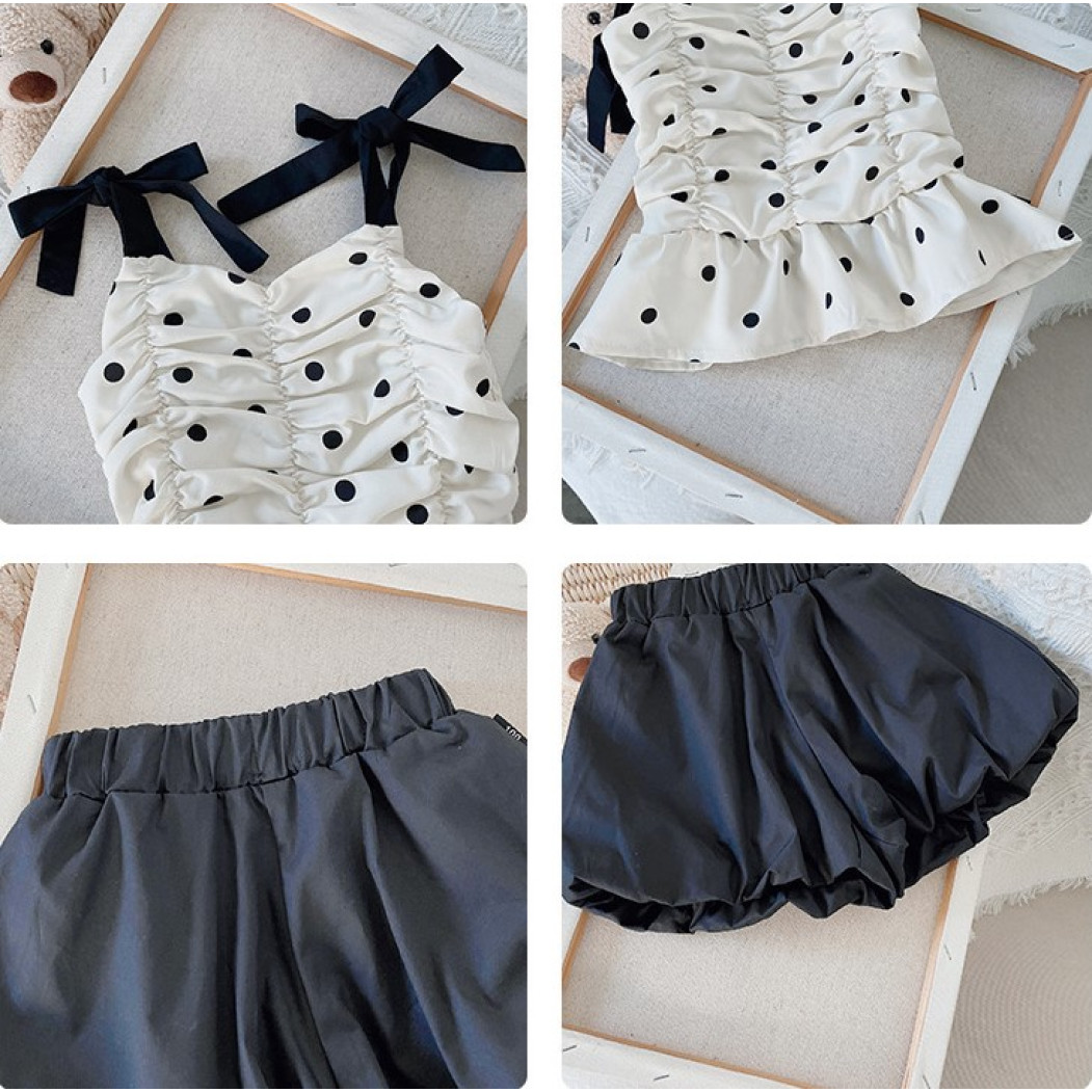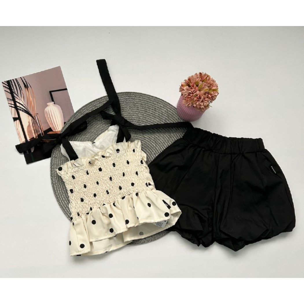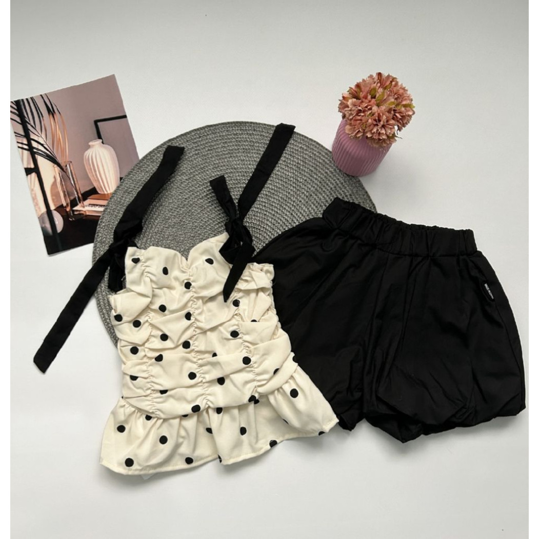 Опис Костюм на літо для дівчинки майка в горох і шорти 10476
