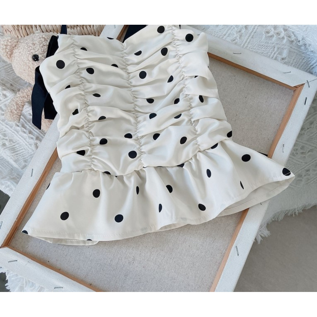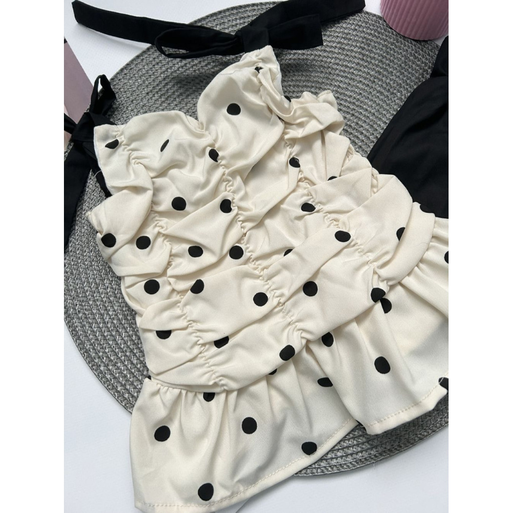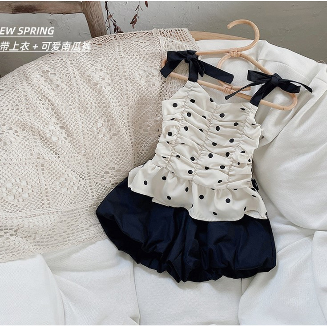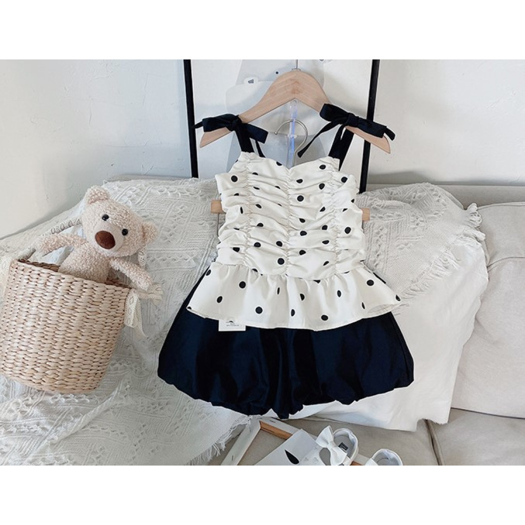 Опис Костюм на літо для дівчинки майка в горох і шорти 10476
