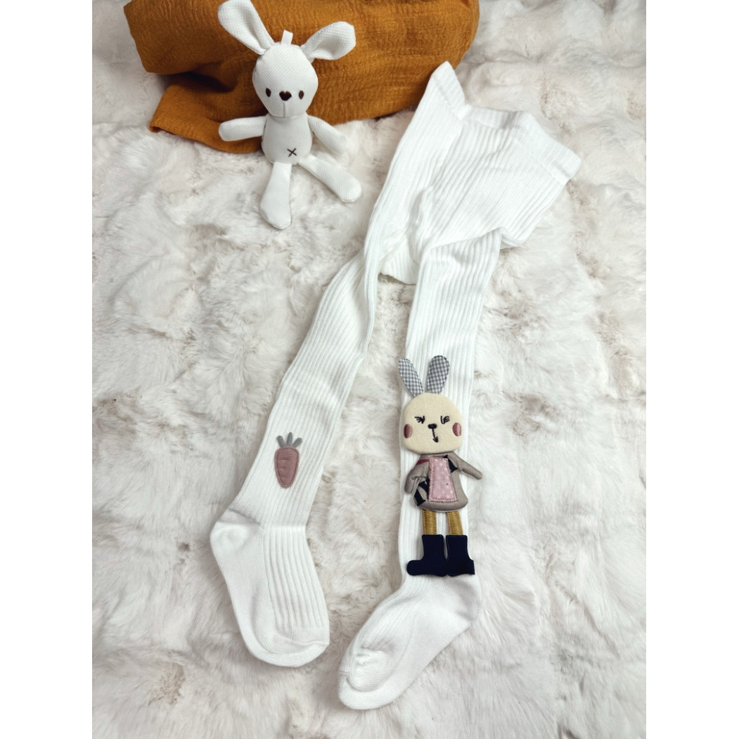 Опис Колготки для дівчинки з зайчиком колір білий 10688
