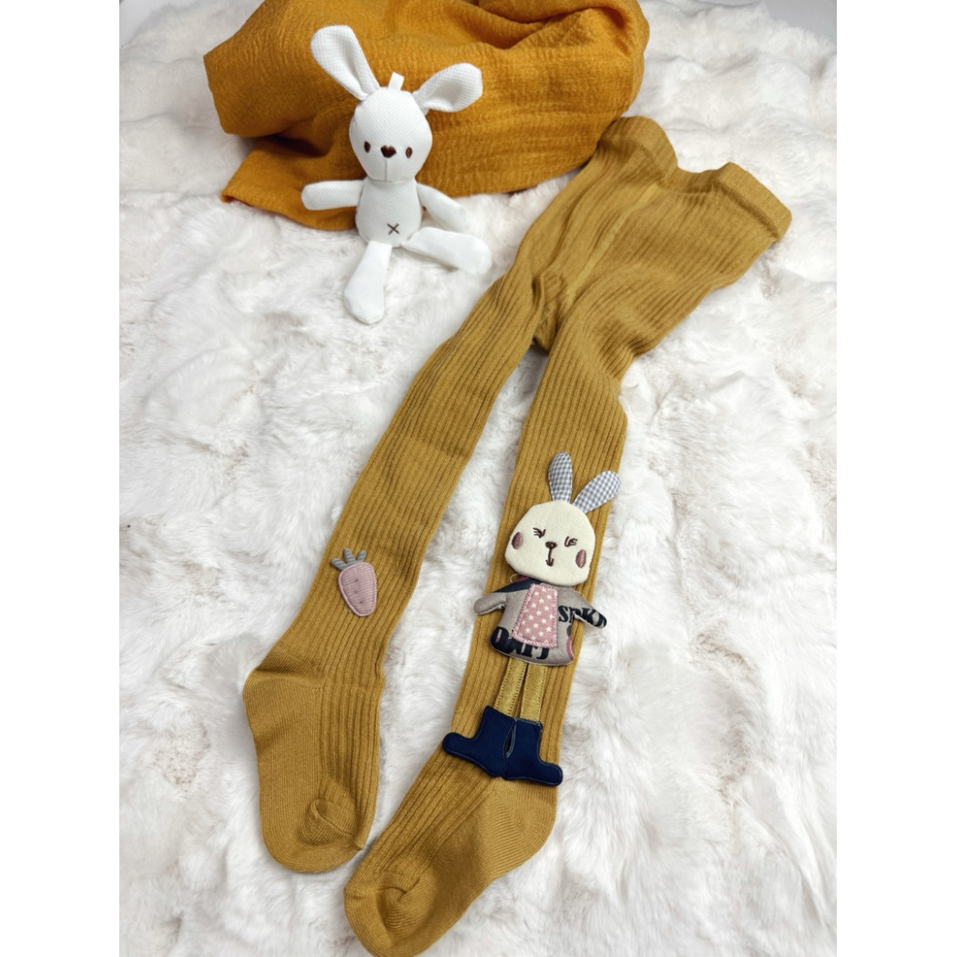 М'які та еластичні колготки для маленьких модниць! Ці стильні дитячі колготки виготовлені з натуральної бавовни, яка забезпечує комфорт і тепло. Оригінальний дизайн із нашитим зайчиком на ніжці додає образу грайливості та чарівності. Завдяки еластичності матеріалу, колготки чудово тягнуться та не сковують рухів.