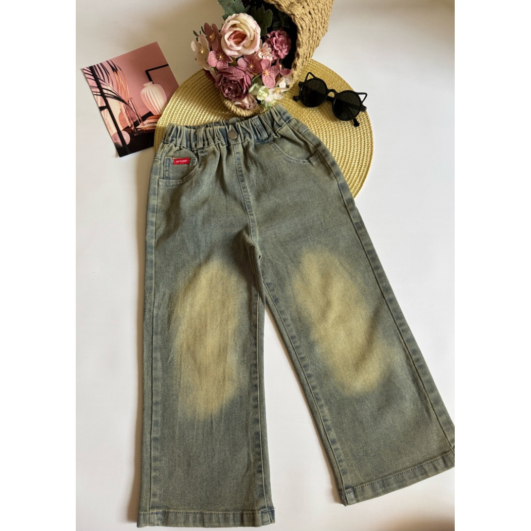 Ці джинси для дівчаток створені з м’якого котонового деніму середньої щільності. Пояс на резинці забезпечує комфортну посадку без зайвих застібок. Вони легко вдягаються навіть самостійно — ідеально для дитсадка чи прогулянки з друзями.