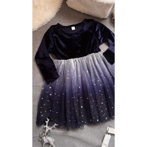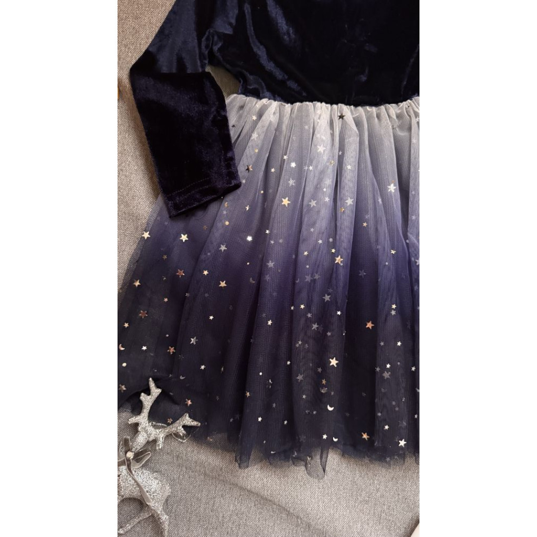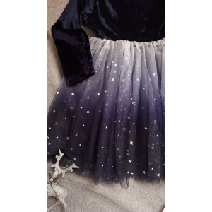 Низ із фатину, прикрашений блискучими зірочками — створює ефект казкової легкості.