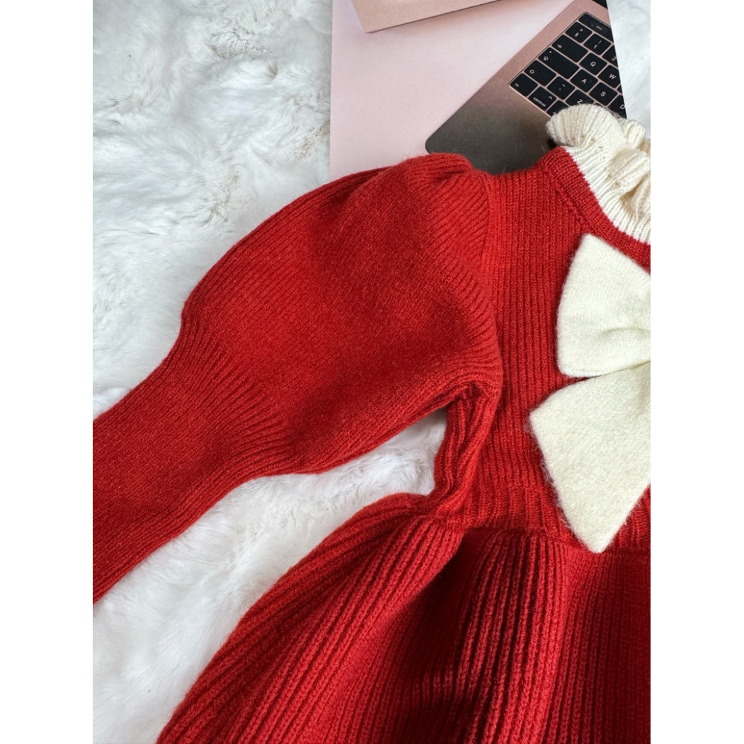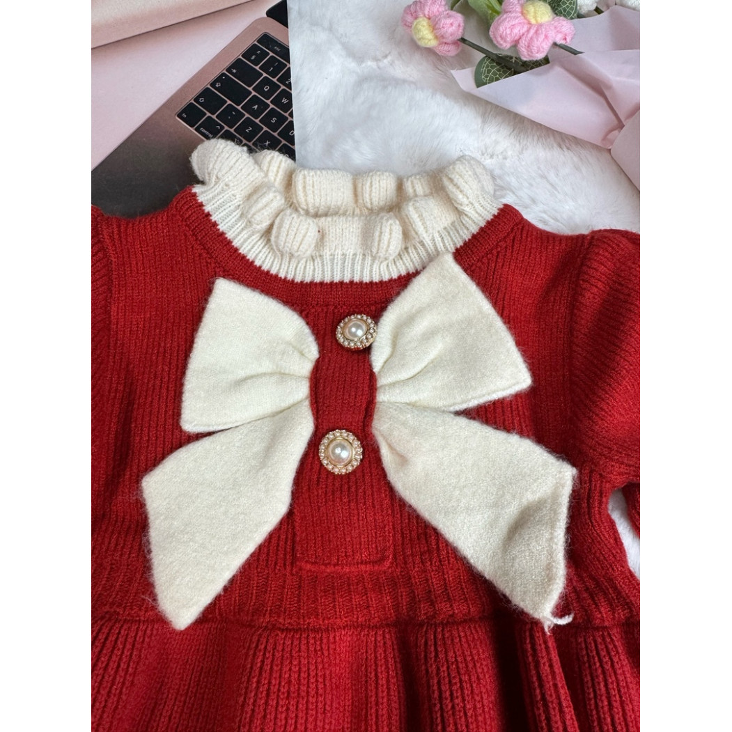 Опис Сукня для дівчинки в'язана з бантиком колір червоний 10708