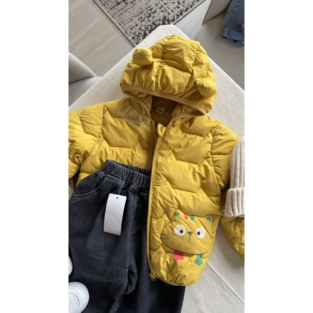 Опис Демісезонна курточка з котиком колір жовтий 11038