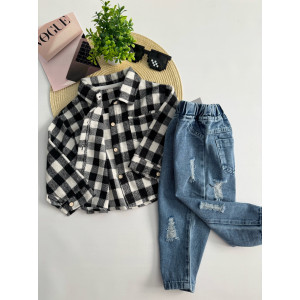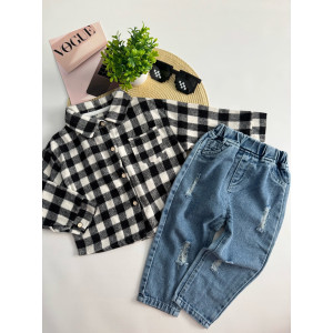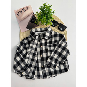Опис Сорочка для хлопчика стильна чорно-біла в клітинку 10879