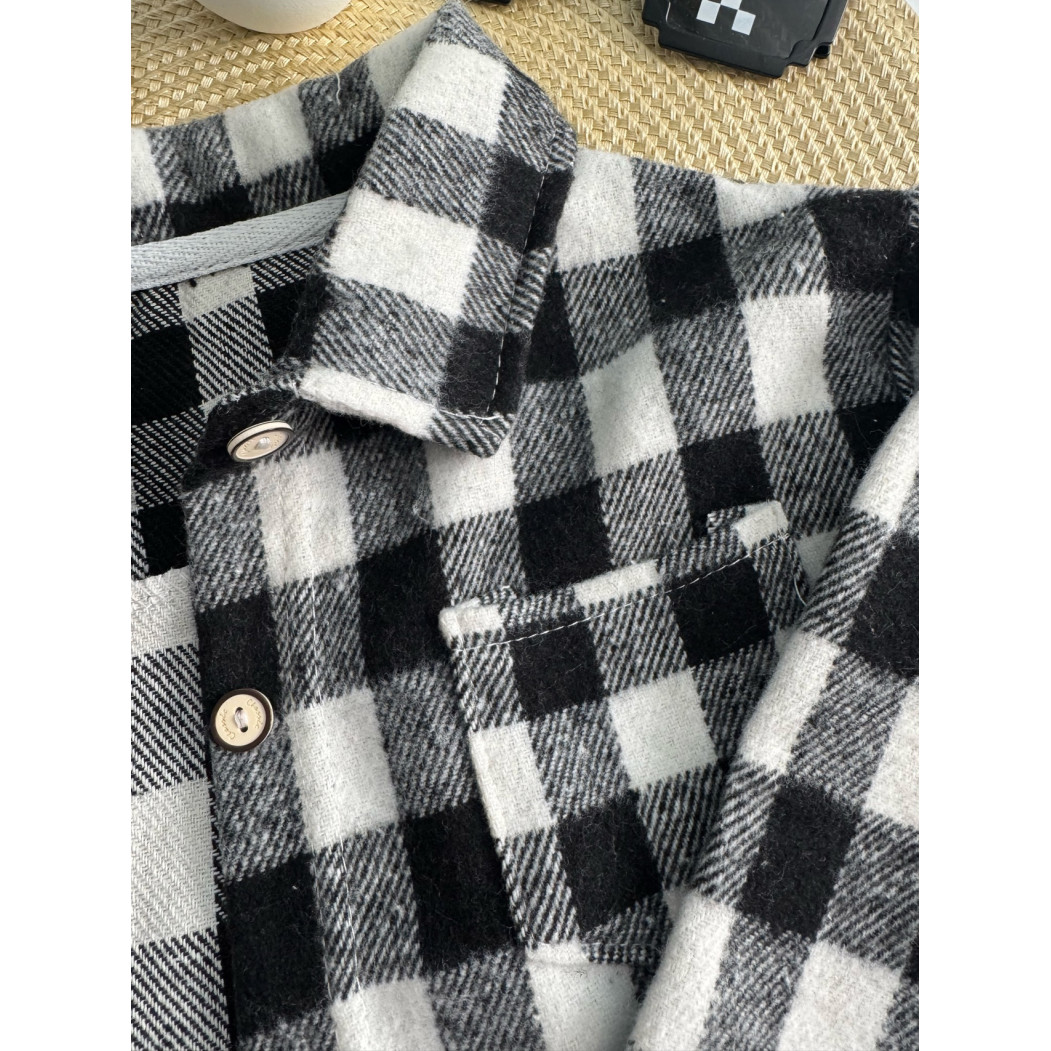 Опис Сорочка для хлопчика стильна чорно-біла в клітинку 10879