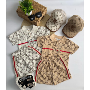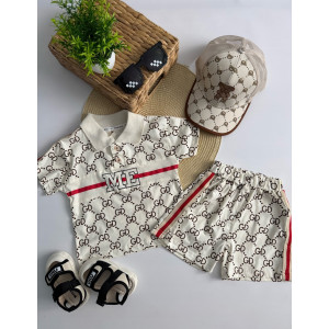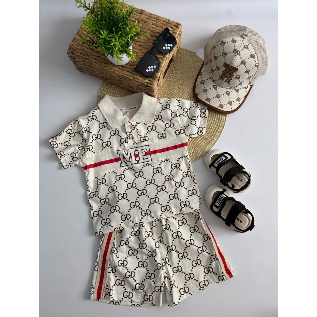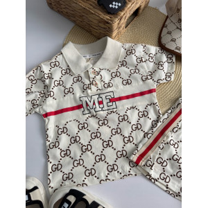 Комплект складається з легкої футболки-поло та шортів у стилі street casual. Модний принт "GD" з яскравою вставкою "ME" додає індивідуальності та впевненості маленькому моднику. Контрастні червоні смужки з боків шортів роблять образ ще динамічнішим.