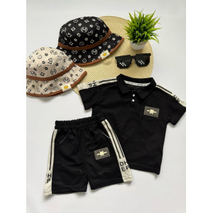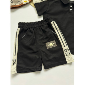 Літній костюм для хлопчика "Urban Style" – чорний комплект з футболкою-поло та шортами (100% бавовна)