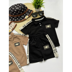 Шукаєте стильний і комфортний літній одяг для свого хлопчика? Костюм "Urban Style" – ідеальне поєднання модного вигляду та зручності! Комплект складається з футболки-поло та шортів чорного кольору з контрастними білими вставками та оригінальними нашивками.
