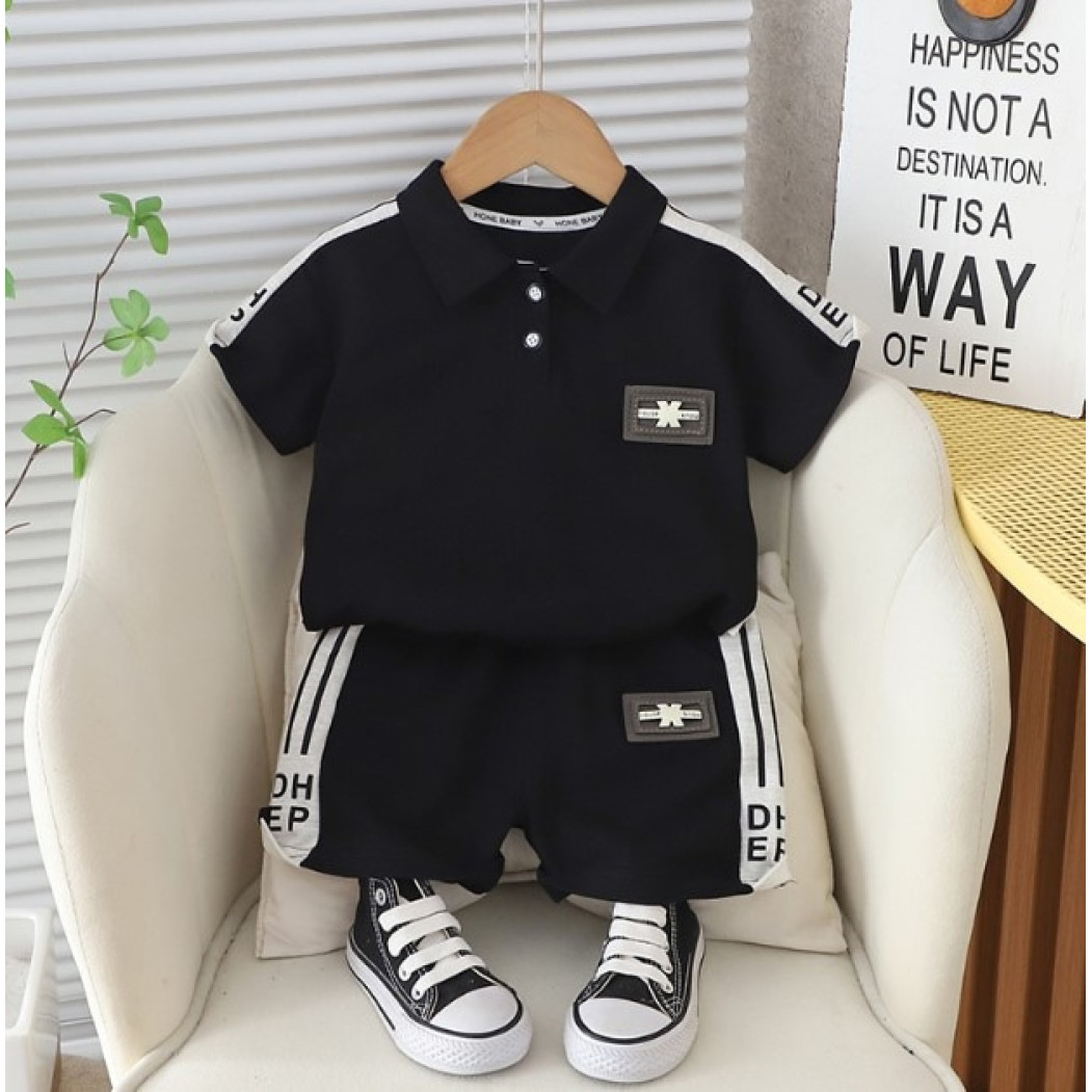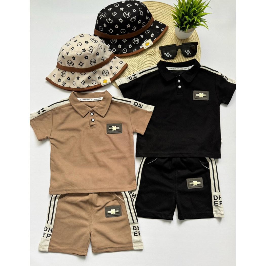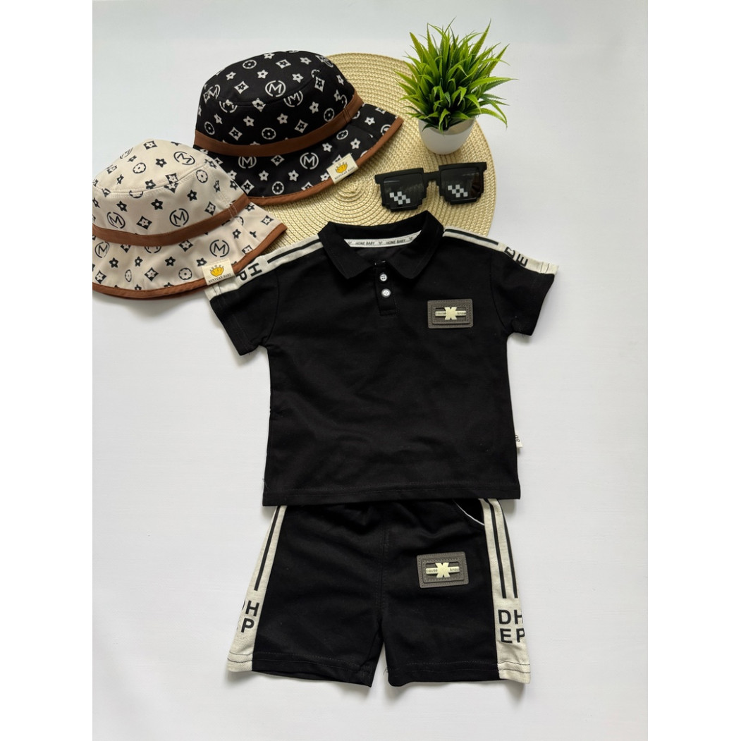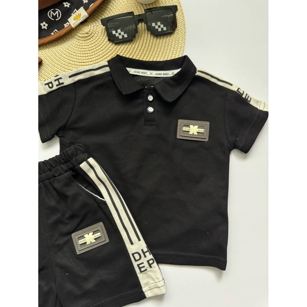 Літній костюм для хлопчика "Urban Style" – чорний комплект з футболкою-поло та шортами (100% бавовна)