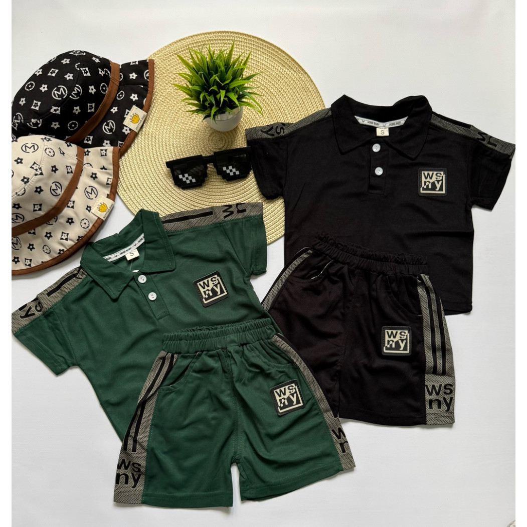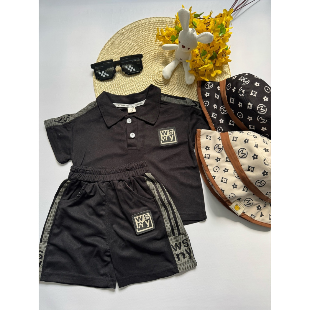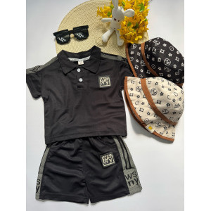 Дитячий літній костюм для хлопчика чорний WSNYY – футболка-поло + шорти
